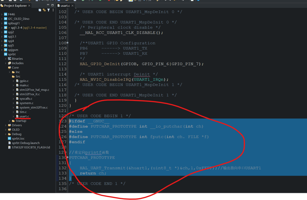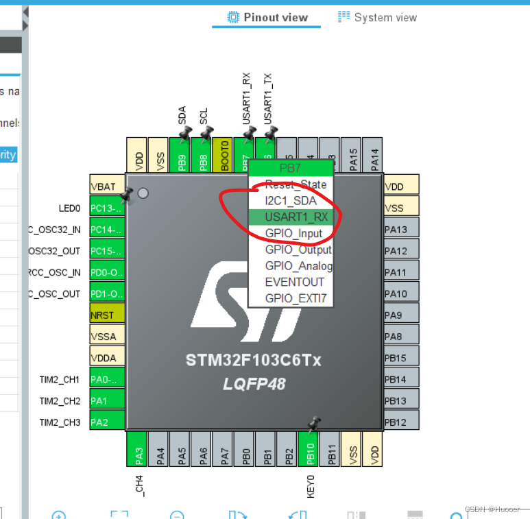 考虑到单片机引脚位置,需要把串口引脚重定向到PB6和PB7。
