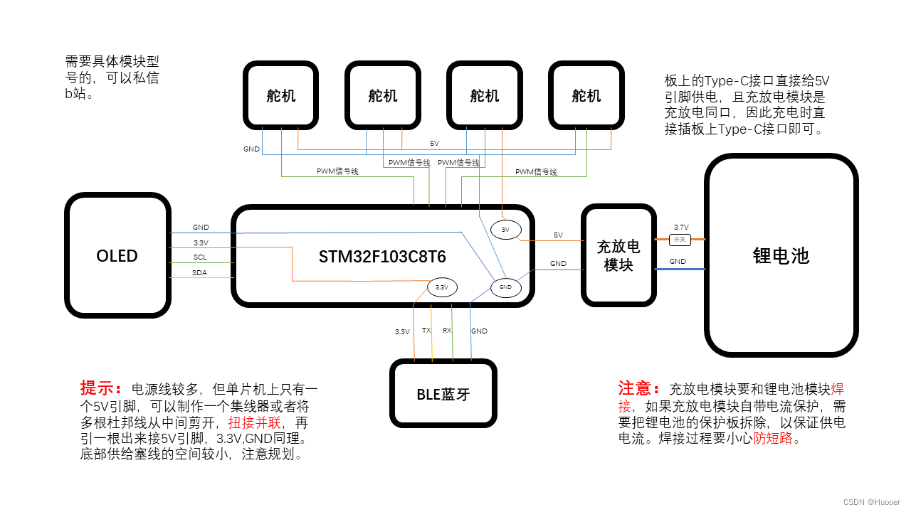 供电:锂电池 (3.7V 30mm*40mm 800mah,建议购买尺寸合适的飞控专用锂电池或两块普通锂电池并联,输出功率大,不需要后续拆保护板) + 锂电池充放电模块(不会自动断电、适配3.7V锂电池、输出5V、充放电同口)