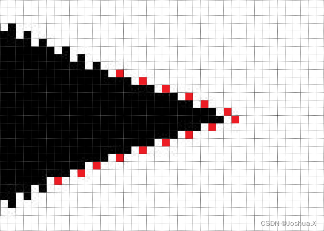 这里明显出现了一个尖角,但他还没有变成角点,因为撕裂不够大,相邻的两行边界差距不够大。