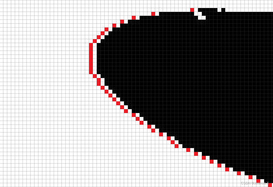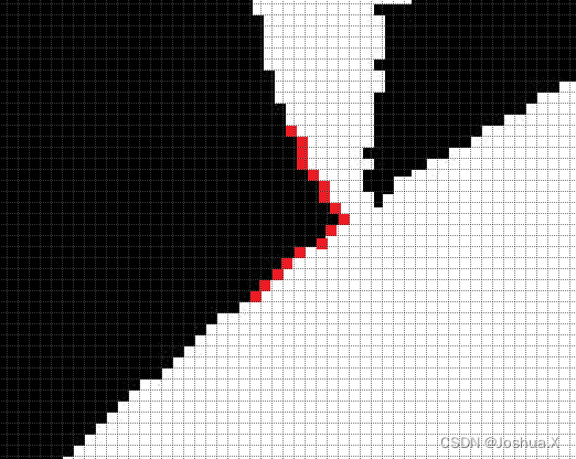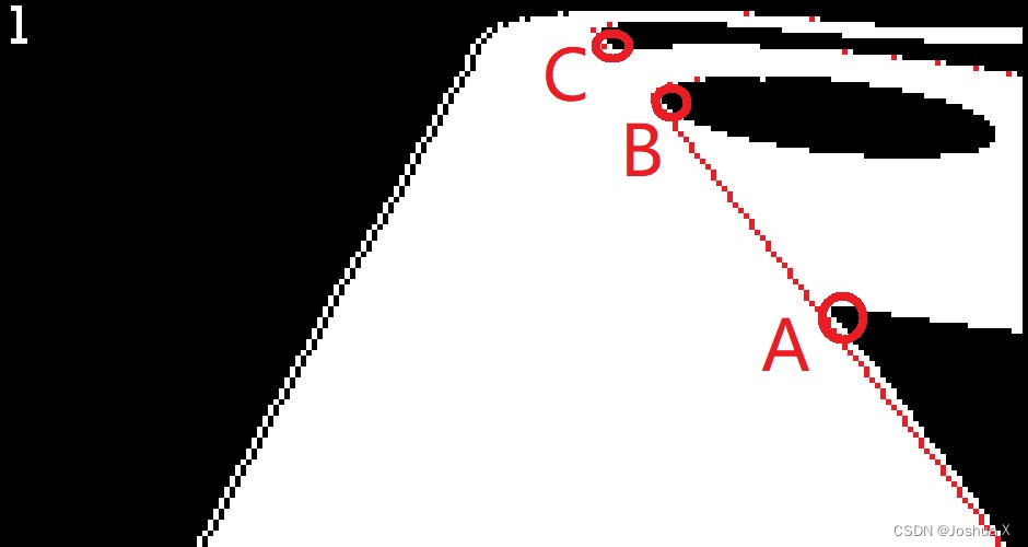 这次画的是一条实线,就是将图像上的像素点涂黑,不是将某点记录为边界。