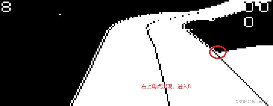 else if(Island_State==8)//环岛8         {             Right_Up_Guai[0]=Find_Right_Up_Point(MT9V03X_H-1,10);//获取右上点坐标             Right_Up_Guai[1]=Right_Line[Right_Up_Guai[0]];             Lengthen_Right_Boundry(Right_Up_Guai[0]-1,MT9V03X_H-1);             if((Island_State==8)&&(Right_Up_Guai[0]>=MT9V03X_H-20||(Right_Up_Guai[0]<10&&Boundry_Start_Left>=MT9V03X_H-10)))//当拐点靠下时候,认为出环了,环岛结束             {//角点靠下,或者下端不丢线,认为出环了                 FJ_Angle=0;                 Island_State=9;                 Right_Island_Flag=0;             }         }