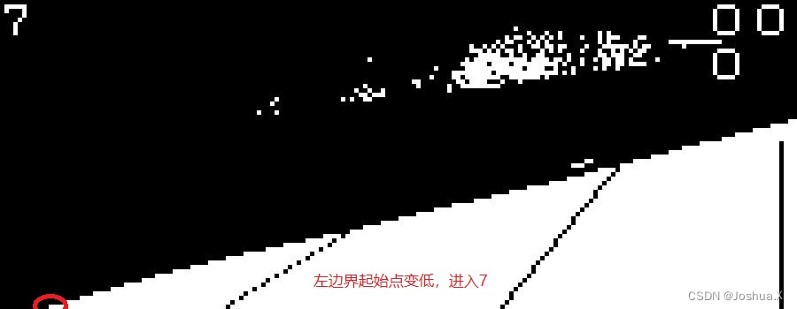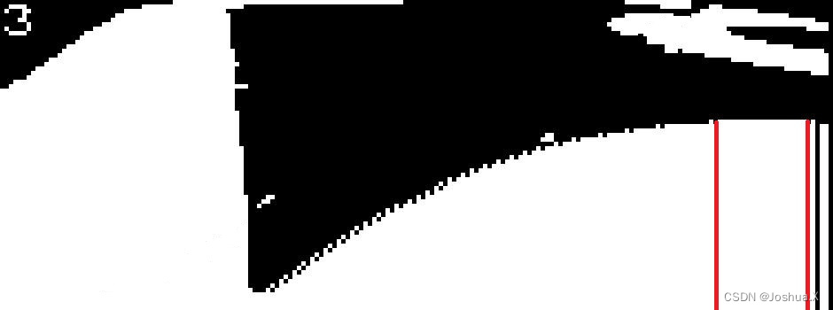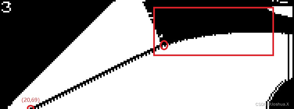 我左下定点坐标(20,69),那么最长白列搜索起始行就从25或者30开始。不然的话边线还是会混乱。