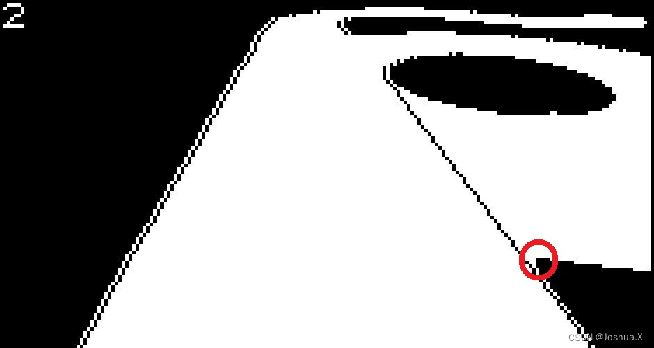 这种情况有一点风险,就是图像有可能会“跳帧”。就比如可能上一秒图像的角点还在上方,下一秒由于卡顿,或者其他情况,角点突然靠下,结果车子没有识别到这个角点,补线就会乱补线,产生问题。