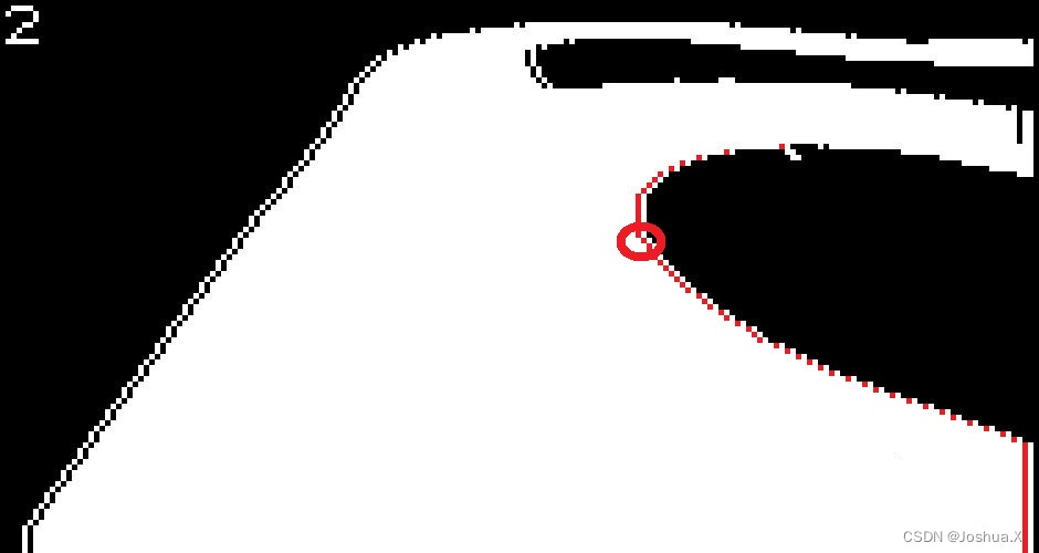 判别方法也是一模一样,利用边线误差过大突然过大,我称之为“边线撕裂”。