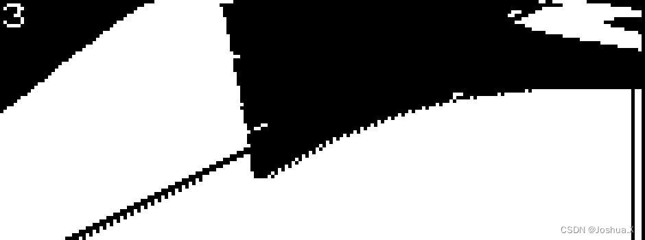 /*-------------------------------------------------------------------------------------------------------------------   @brief     元素标志位显示   @param     二值化图片数组   @return    null   Sample     Flag_Show_202(MT9V03X_W,image_two_value,Island_State);   @note      第二行倒数第二个数字 -------------------------------------------------------------------------------------------------------------------*/ void Flag_Show_202(uint8 MT9V03XW,uint8(*InImg)[MT9V03XW],uint8 image_flag) {     for(uint8 H=10+1;H<10+8;H++)     {         for(uint8 W=MT9V03XW-10+1;W//数字图像数组 const uint8 Image_Flags[][9][8]={         {                                //0         {0X00,0X00,0X00,0X00,0X00,0X00,0X00,0X00},         {0X00,0X00,0XFF,0XFF,0XFF,0XFF,0X00,0X00},         {0X00,0XFF,0X00,0X00,0X00,0X00,0XFF,0X00},         {0X00,0XFF,0X00,0X00,0X00,0X00,0XFF,0X00},         {0X00,0XFF,0X00,0X00,0X00,0X00,0XFF,0X00},         {0X00,0XFF,0X00,0X00,0X00,0X00,0XFF,0X00},         {0X00,0XFF,0X00,0X00,0X00,0X00,0XFF,0X00},         {0X00,0X00,0XFF,0XFF,0XFF,0XFF,0X00,0X00},         {0X00,0X00,0X00,0X00,0X00,0X00,0X00,0X00}, }, {                                        //1         {0X00,0X00,0X00,0X00,0X00,0X00,0X00,0X00},         {0X00,0X00,0XFF,0XFF,0X00,0X00,0X00,0X00},         {0X00,0X00,0X00,0XFF,0X00,0X00,0X00,0X00},         {0X00,0X00,0X00,0XFF,0X00,0X00,0X00,0X00},         {0X00,0X00,0X00,0XFF,0X00,0X00,0X00,0X00},         {0X00,0X00,0X00,0XFF,0X00,0X00,0X00,0X00},         {0X00,0X00,0X00,0XFF,0X00,0X00,0X00,0X00},         {0X00,0X00,0XFF,0XFF,0XFF,0X00,0X00,0X00},         {0X00,0X00,0X00,0X00,0X00,0X00,0X00,0X00}, }, {                                        //2         {0X00,0X00,0X00,0X00,0X00,0X00,0X00,0X00},         {0X00,0X00,0XFF,0XFF,0XFF,0XFF,0X00,0X00},         {0X00,0XFF,0X00,0X00,0X00,0X00,0XFF,0X00},         {0X00,0X00,0X00,0X00,0X00,0X00,0XFF,0X00},         {0X00,0X00,0X00,0X00,0XFF,0XFF,0X00,0X00},         {0X00,0X00,0X00,0XFF,0X00,0X00,0X00,0X00},         {0X00,0X00,0XFF,0X00,0X00,0X00,0X00,0X00},         {0X00,0XFF,0XFF,0XFF,0XFF,0XFF,0XFF,0X00},         {0X00,0X00,0X00,0X00,0X00,0X00,0X00,0X00}, }, {                                        //3         {0X00,0X00,0X00,0X00,0X00,0X00,0X00,0X00},         {0X00,0X00,0XFF,0XFF,0XFF,0XFF,0X00,0X00},         {0X00,0XFF,0X00,0X00,0X00,0XFF,0XFF,0X00},         {0X00,0X00,0X00,0X00,0X00,0XFF,0X00,0X00},         {0X00,0X00,0X00,0X00,0XFF,0XFF,0X00,0X00},         {0X00,0X00,0X00,0X00,0X00,0X00,0XFF,0X00},         {0X00,0XFF,0X00,0X00,0X00,0X00,0XFF,0X00},         {0X00,0X00,0XFF,0XFF,0XFF,0XFF,0X00,0X00},         {0X00,0X00,0X00,0X00,0X00,0X00,0X00,0X00}, }, {                                        //4         {0X00,0X00,0X00,0X00,0X00,0X00,0X00,0X00},         {0X00,0X00,0X00,0X00,0XFF,0X00,0X00,0X00},         {0X00,0X00,0X00,0XFF,0XFF,0X00,0X00,0X00},         {0X00,0X00,0XFF,0X00,0XFF,0X00,0X00,0X00},         {0X00,0XFF,0X00,0X00,0XFF,0X00,0X00,0X00},         {0X00,0XFF,0X00,0X00,0XFF,0X00,0X00,0X00},         {0X00,0XFF,0XFF,0XFF,0XFF,0X00,0X00,0X00},         {0X00,0X00,0X00,0X00,0XFF,0X00,0X00,0X00},         {0X00,0X00,0X00,0XFF,0XFF,0X00,0X00,0X00}, }, {                                        //5         {0X00,0X00,0X00,0X00,0X00,0X00,0X00,0X00},         {0X00,0XFF,0XFF,0XFF,0XFF,0XFF,0X00,0X00},         {0X00,0XFF,0X00,0X00,0X00,0X00,0X00,0X00},         {0X00,0XFF,0X00,0X00,0X00,0X00,0X00,0X00},         {0X00,0XFF,0XFF,0XFF,0XFF,0XFF,0X00,0X00},         {0X00,0X00,0X00,0X00,0X00,0XFF,0X00,0X00},         {0X00,0XFF,0X00,0X00,0X00,0XFF,0X00,0X00},         {0X00,0X00,0XFF,0XFF,0XFF,0X00,0X00,0X00},         {0X00,0X00,0X00,0X00,0X00,0X00,0X00,0X00}, }, {                                        //6         {0X00,0X00,0X00,0X00,0X00,0X00,0X00,0X00},         {0X00,0XFF,0XFF,0XFF,0XFF,0XFF,0X00,0X00},         {0X00,0XFF,0X00,0X00,0X00,0X00,0X00,0X00},         {0X00,0XFF,0X00,0X00,0X00,0X00,0X00,0X00},         {0X00,0XFF,0XFF,0XFF,0XFF,0XFF,0X00,0X00},         {0X00,0XFF,0X00,0X00,0X00,0XFF,0X00,0X00},         {0X00,0XFF,0X00,0X00,0X00,0XFF,0X00,0X00},         {0X00,0XFF,0XFF,0XFF,0XFF,0XFF,0X00,0X00},         {0X00,0X00,0X00,0X00,0X00,0X00,0X00,0X00}, }, {                                        //7         {0X00,0X00,0X00,0X00,0X00,0X00,0X00,0X00},         {0X00,0XFF,0XFF,0XFF,0XFF,0XFF,0X00,0X00},         {0X00,0XFF,0X00,0X00,0X00,0XFF,0X00,0X00},         {0X00,0X00,0X00,0X00,0X00,0XFF,0X00,0X00},         {0X00,0X00,0X00,0X00,0XFF,0X00,0X00,0X00},         {0X00,0X00,0X00,0XFF,0X00,0X00,0X00,0X00},         {0X00,0X00,0X00,0XFF,0X00,0X00,0X00,0X00},         {0X00,0X00,0X00,0XFF,0X00,0X00,0X00,0X00},         {0X00,0X00,0X00,0X00,0X00,0X00,0X00,0X00}, }, {                                        //8         {0X00,0X00,0X00,0X00,0X00,0X00,0X00,0X00},         {0X00,0X00,0XFF,0XFF,0XFF,0XFF,0X00,0X00},         {0X00,0XFF,0X00,0X00,0X00,0X00,0XFF,0X00},         {0X00,0XFF,0X00,0X00,0X00,0X00,0XFF,0X00},         {0X00,0X00,0XFF,0XFF,0XFF,0XFF,0X00,0X00},         {0X00,0XFF,0X00,0X00,0X00,0X00,0XFF,0X00},         {0X00,0XFF,0X00,0X00,0X00,0X00,0XFF,0X00},         {0X00,0X00,0XFF,0XFF,0XFF,0XFF,0X00,0X00},         {0X00,0X00,0X00,0X00,0X00,0X00,0X00,0X00}, }, {                                        //9         {0X00,0X00,0X00,0X00,0X00,0X00,0X00,0X00},         {0X00,0X00,0XFF,0XFF,0XFF,0XFF,0X00,0X00},         {0X00,0XFF,0X00,0X00,0X00,0X00,0XFF,0X00},         {0X00,0XFF,0X00,0X00,0X00,0X00,0XFF,0X00},         {0X00,0X00,0XFF,0XFF,0XFF,0XFF,0XFF,0X00},         {0X00,0X00,0X00,0X00,0X00,0X00,0XFF,0X00},         {0X00,0X00,0X00,0X00,0X00,0XFF,0X00,0X00},         {0X00,0XFF,0XFF,0XFF,0XFF,0X00,0X00,0X00},         {0X00,0X00,0X00,0X00,0X00,0X00,0X00,0X00}, }, };使用起来非常便捷,写入图像宽度,图像数组,显示的变量