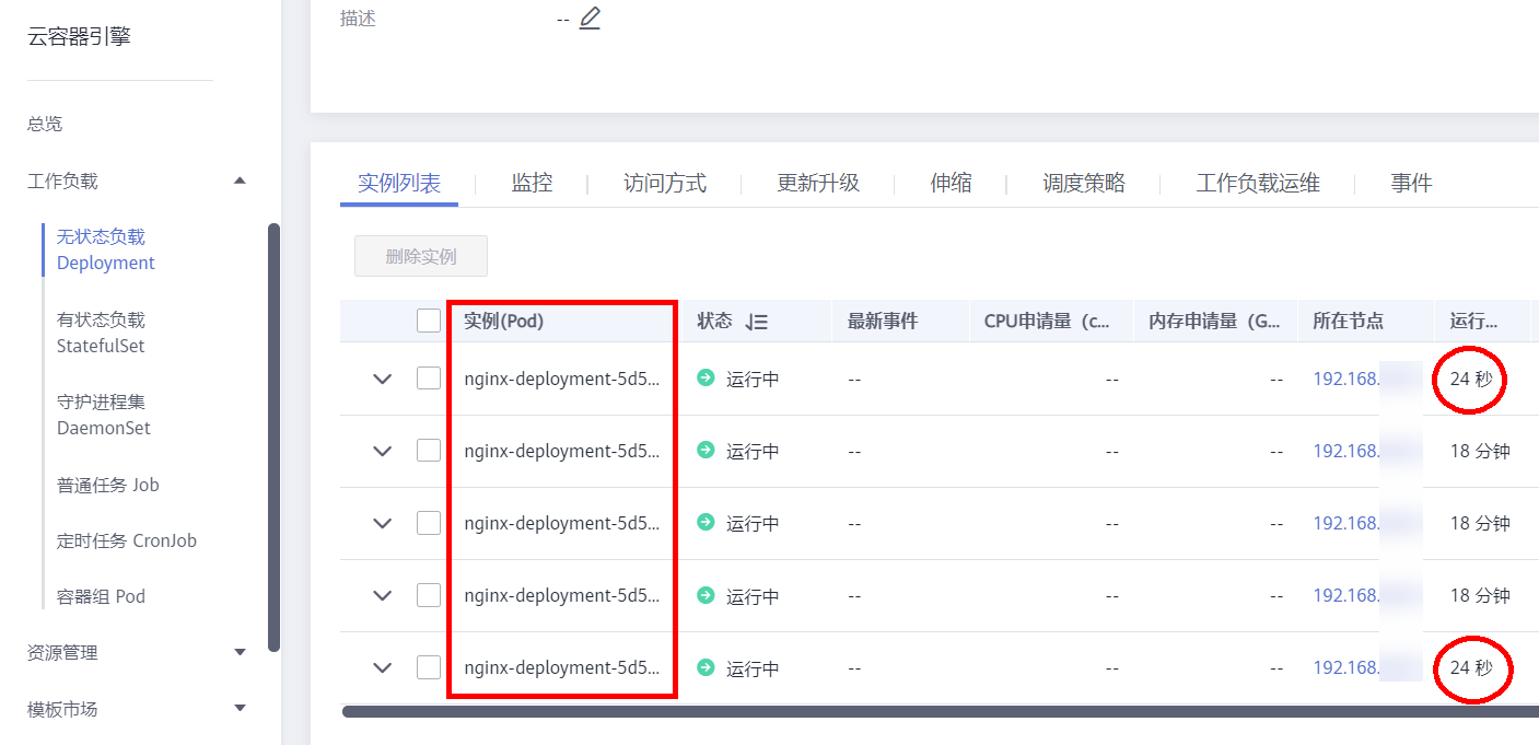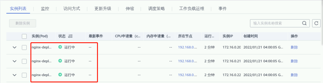 可以点击工作负载名称,进入实例列表,查看实例的详情信息。