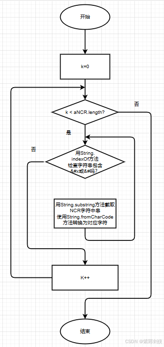 其思路是用String.prototype.replace() 和方法 将字符串中的 NCR 字符逐个获取到 ""和";"间的 Unicode 字符编码值, 然后利用 String.fromCharCode() 方法, 将 Unicode 编码转为对应的字符。