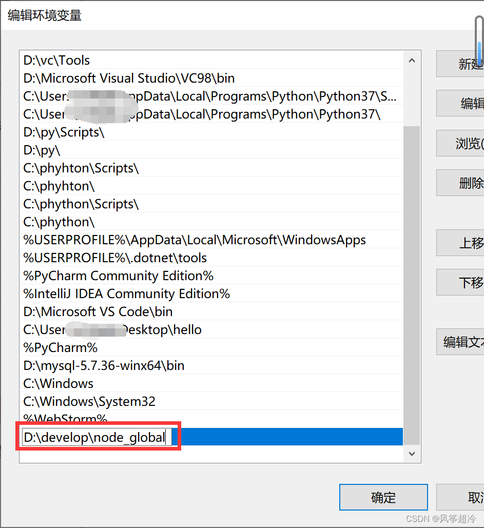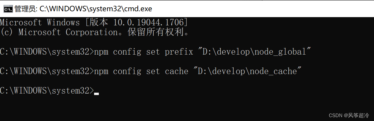 npm config set prefix "D:\develop\node_global" npm config set cache "D:\develop\node_cache"