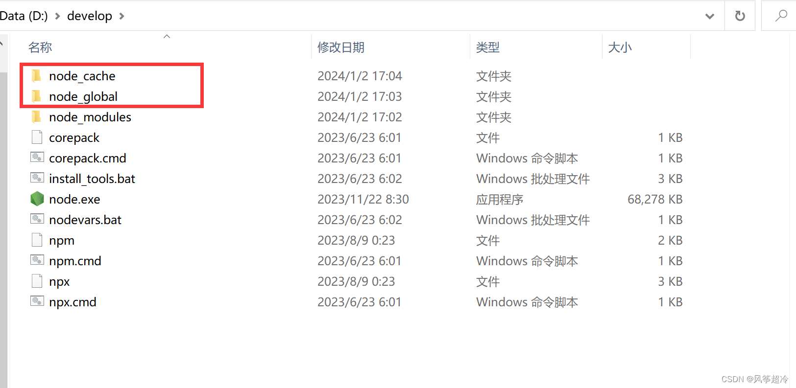安装目录下创建两个新文件夹 node_global 和 node_cache