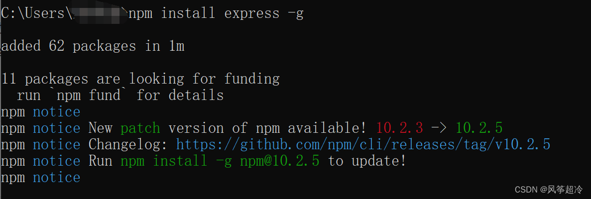 #安装命令 npm install -g @vue/cli #查看vue版本(大写V) vue -V 出现以下运行结果则安装成功!