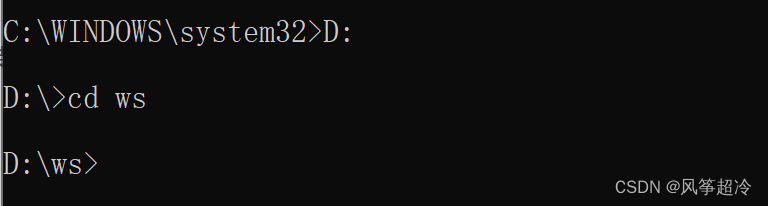 管理员方式打开命令窗 -> 进入根目录(这里我创建的根目录文件夹为ws)
