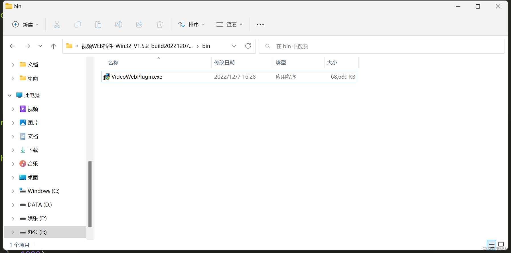 打开下载的文件里的bin文件 安装一下VideoWebPlugin