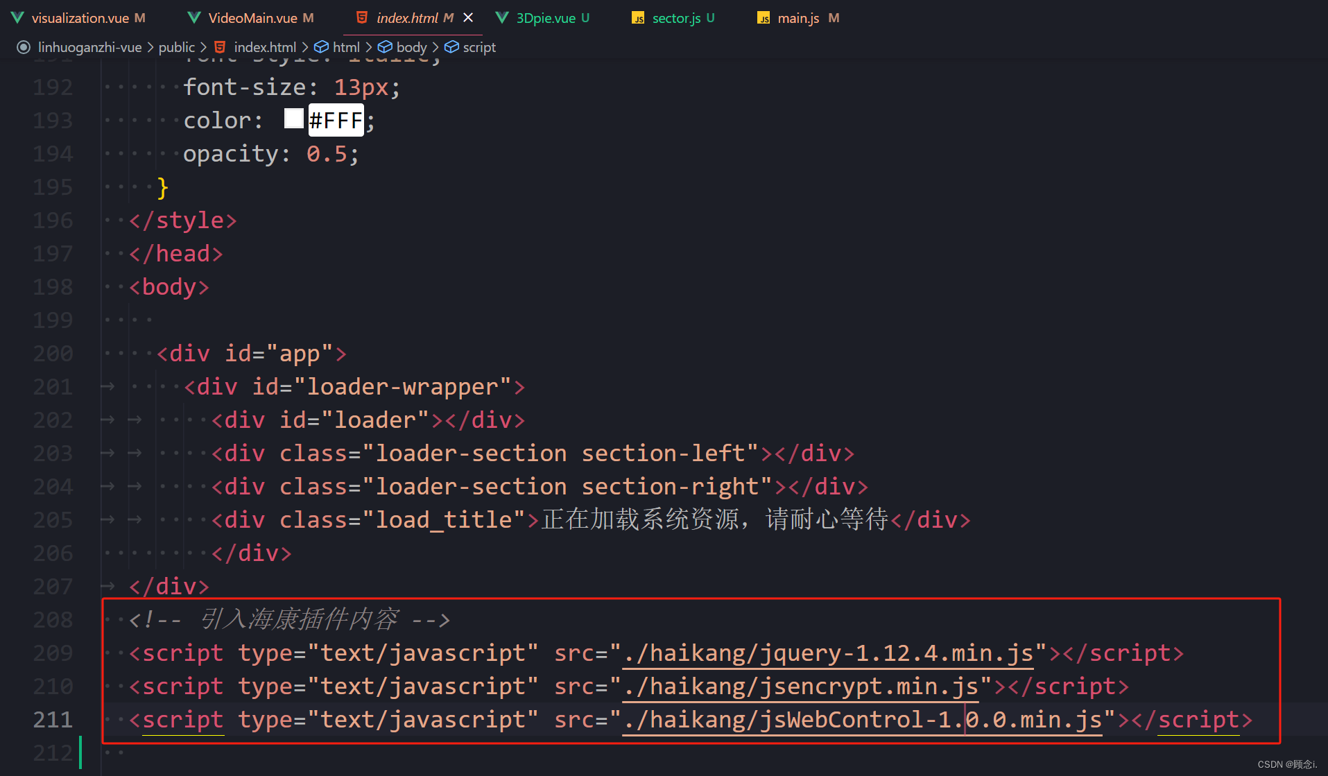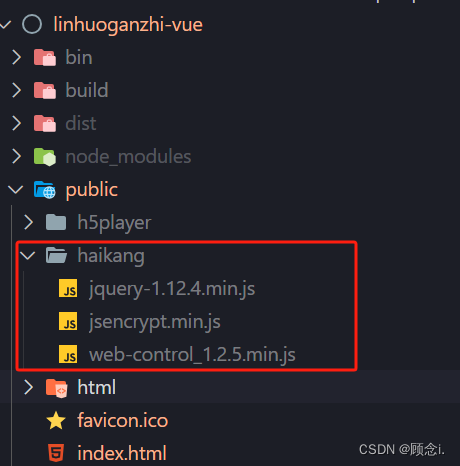 把官方资源包里的query-1.12.4.min.js、jsencrypt.min.js、web-control_1.2.5.min.js复制到vue项目public目录下,在index.html引入js