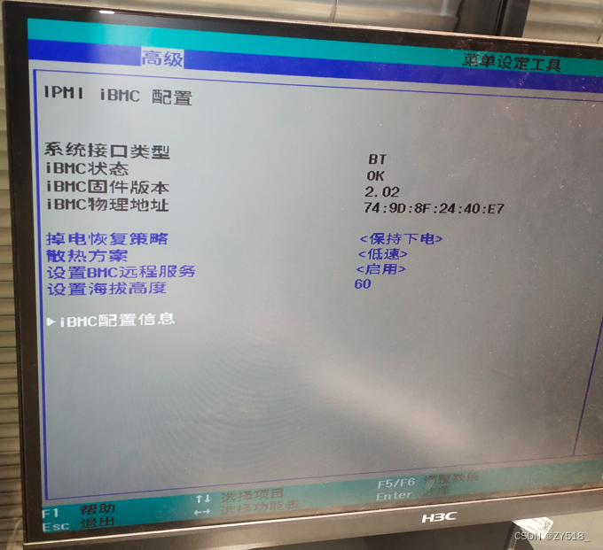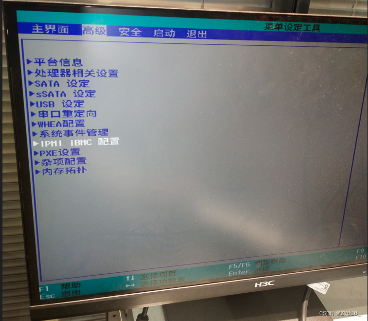 5、选择“高级(回车)——IPMI iBMC 配置(回车)”