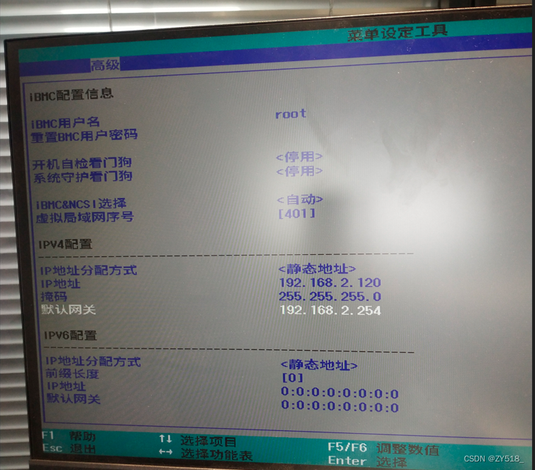 10、重启服务器该地方出现所配置的IP地址证明配置完成,如下图所示,如果显示0.0.0.0,表示配置失败,可能是未保存成功,建议重新配置一次并且保存配置