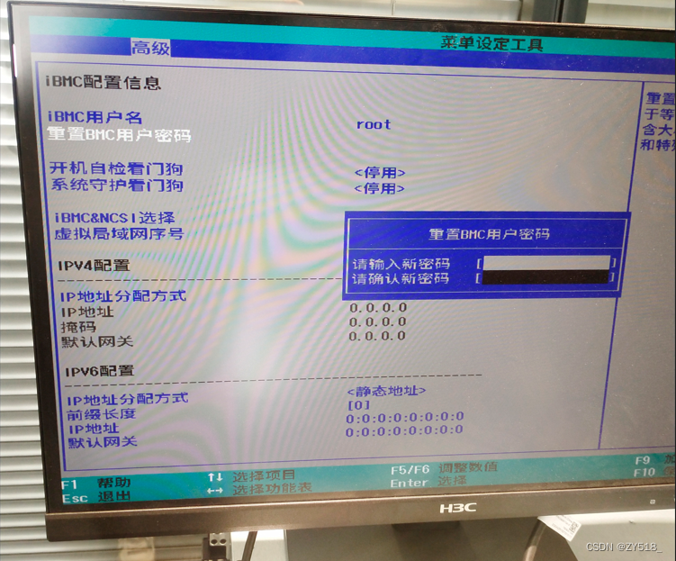 选择“重置BMC用户密码(回车)——输入密码(回车)——确认输入密码(回车)”