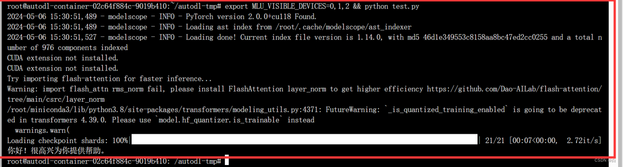 export MLU_VISIBLE_DEVICES=0,1,2 && python test.py