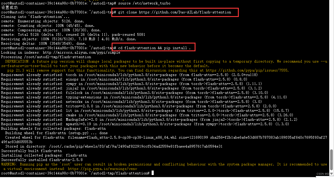 2.cd flash-attention && pip install .(不要忘了这个点)