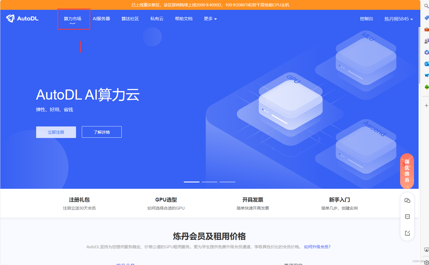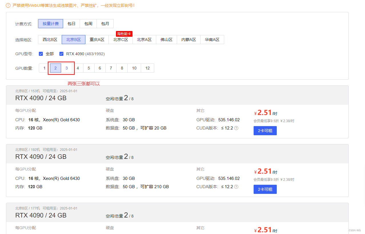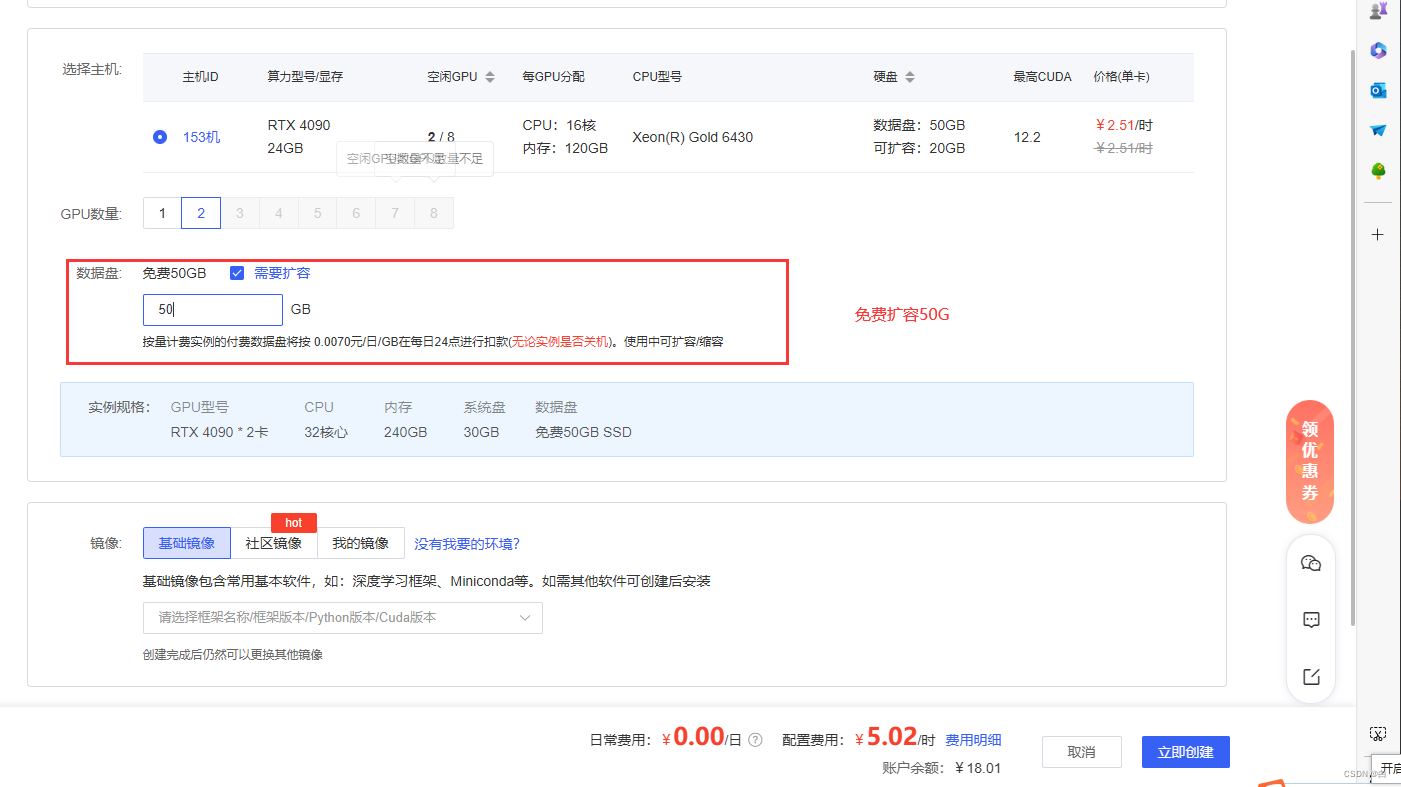 我这里用的是算力云 选择的是两张4090 扩容是50G