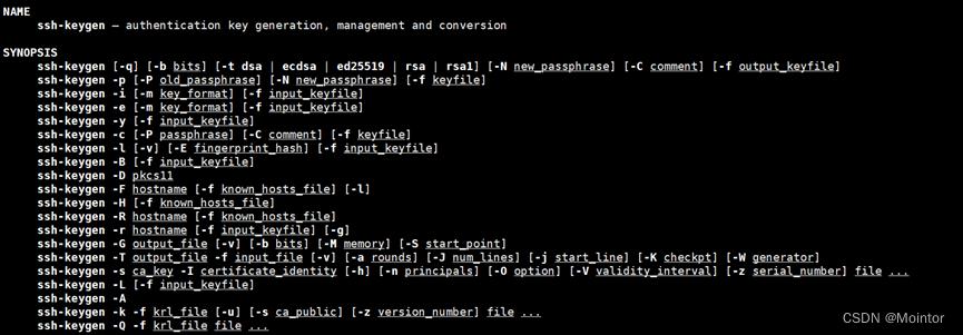 可以使用man ssh-keygen获取命令的帮助信息