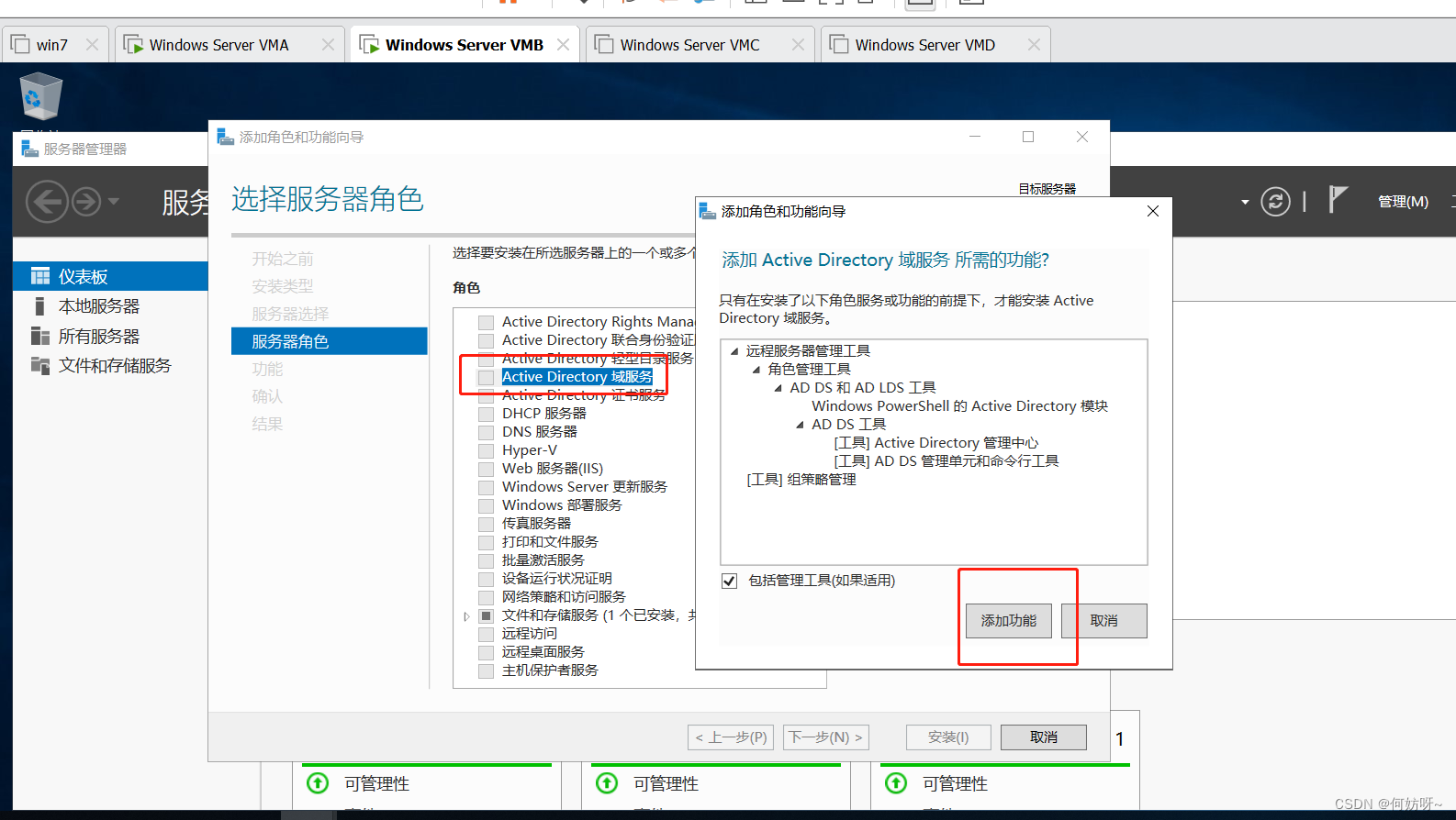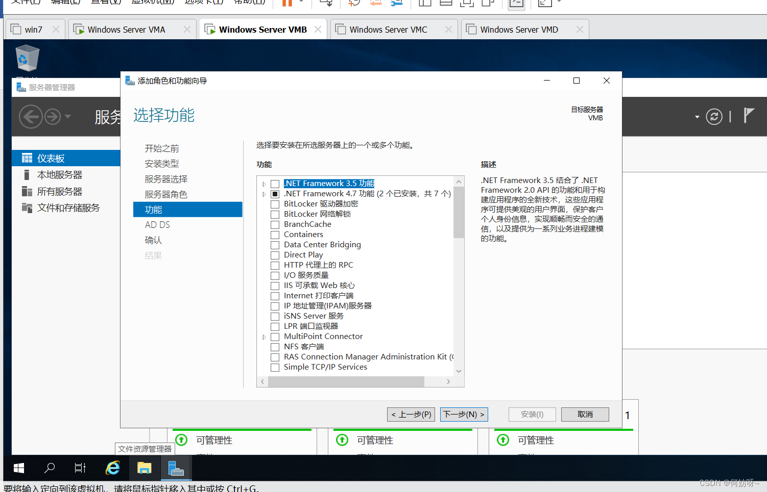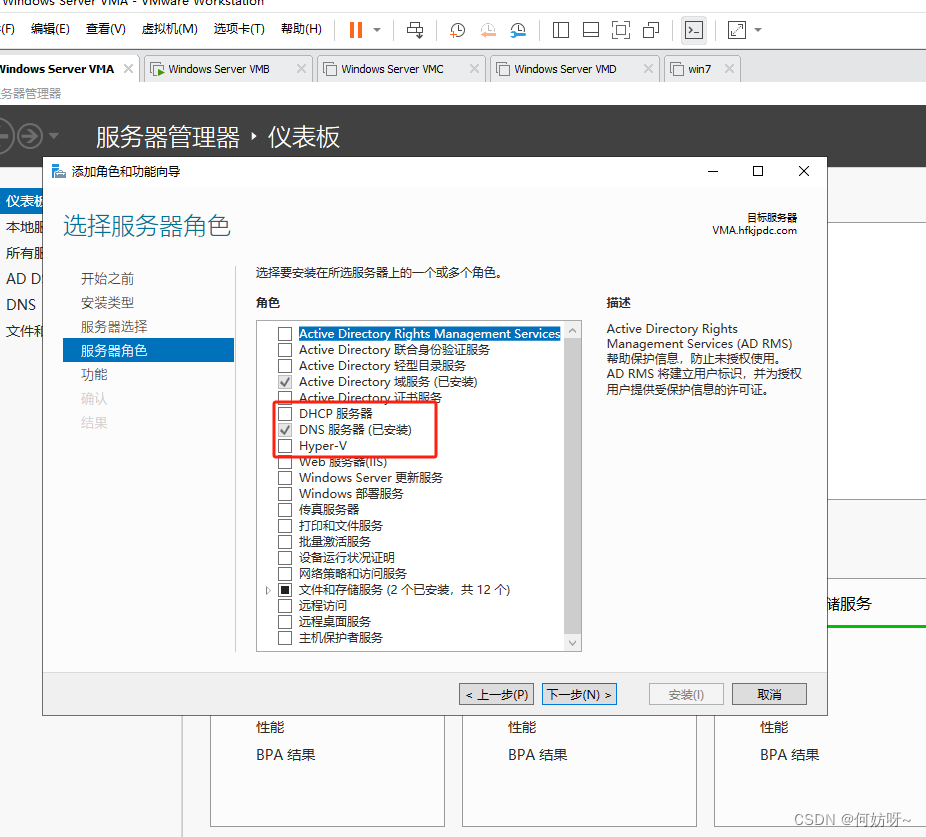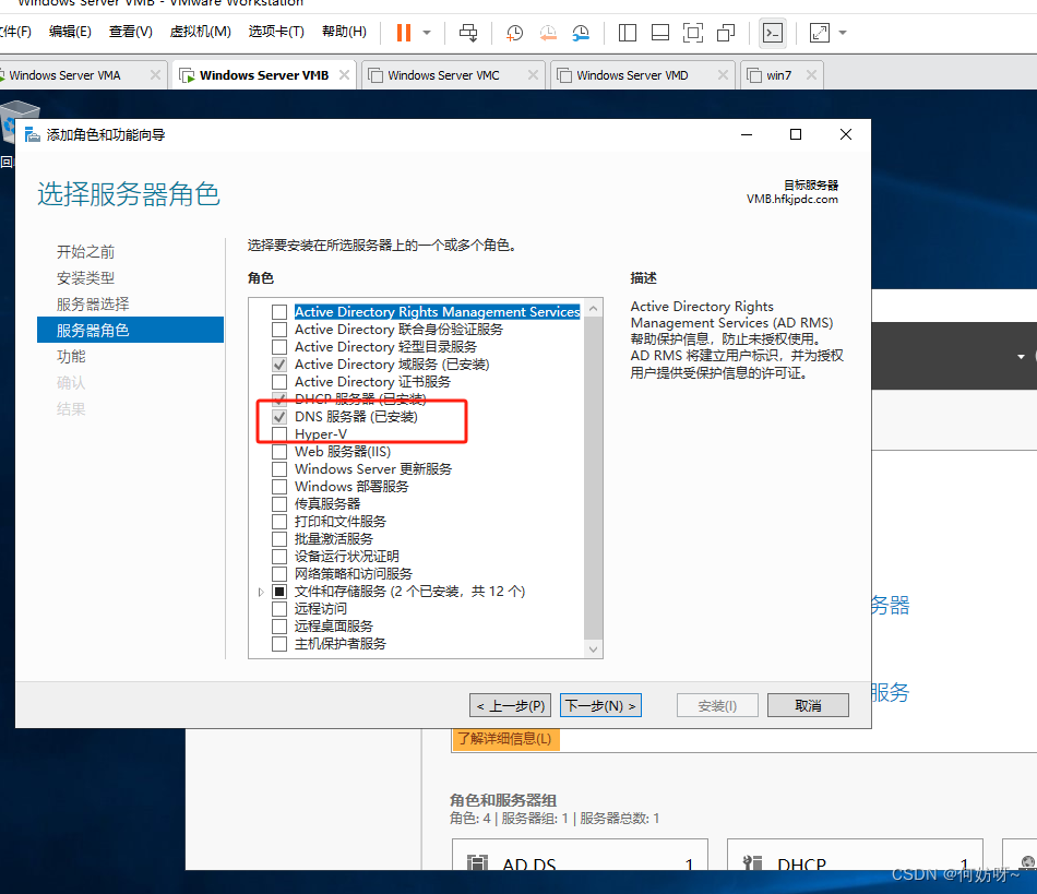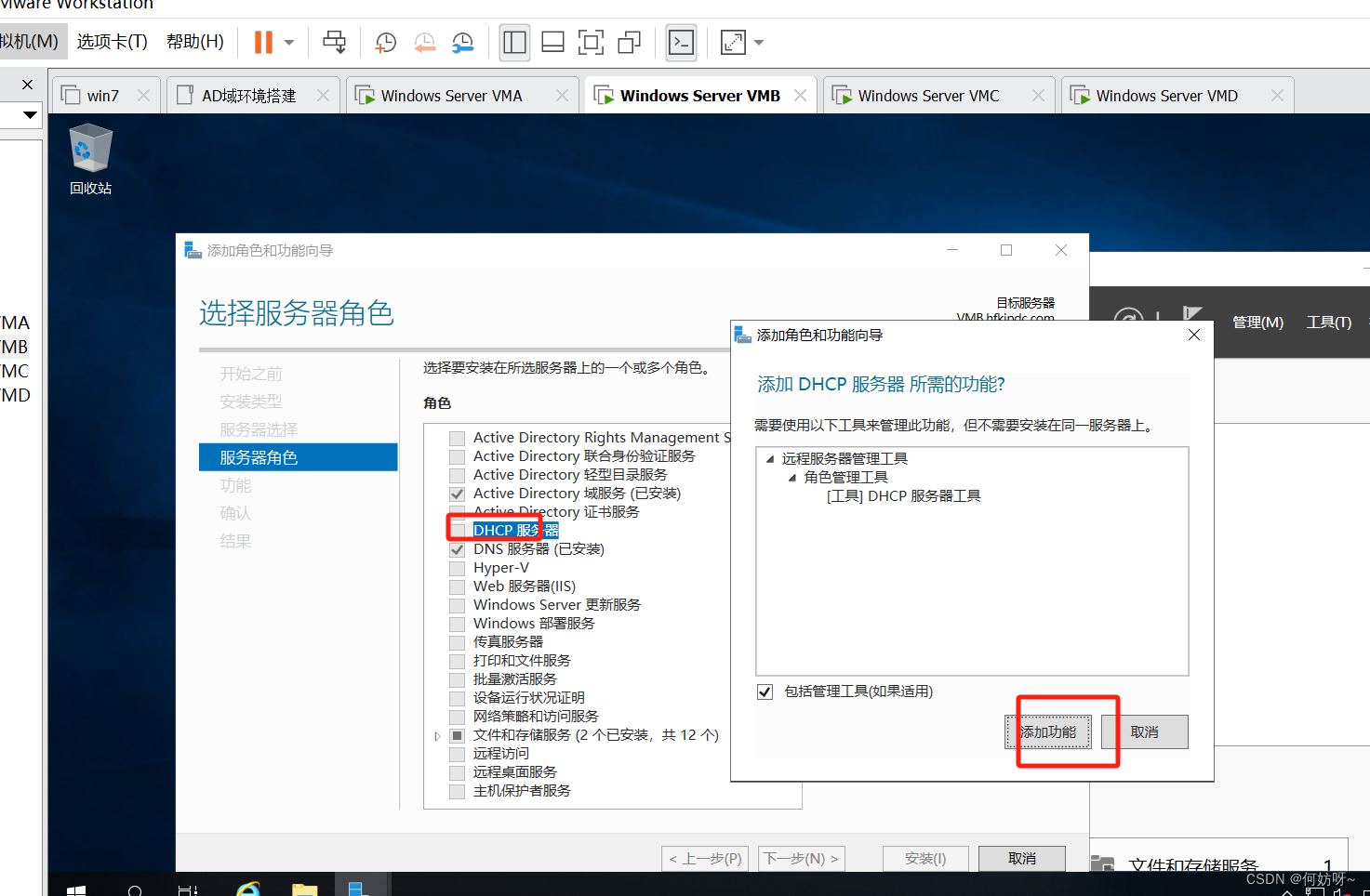 5、勾选DHCP服务,弹框选择添加功能,继续下一步