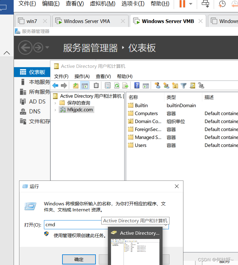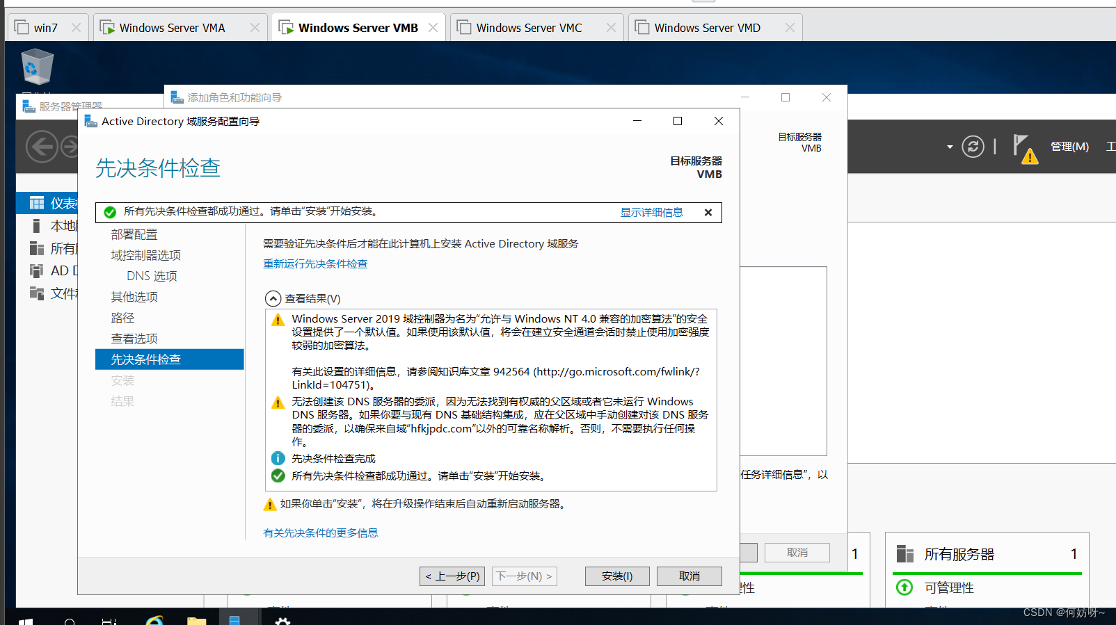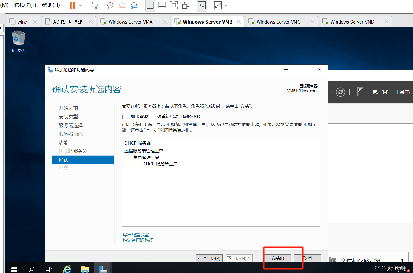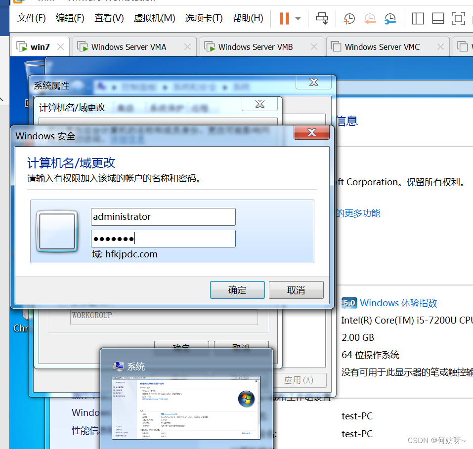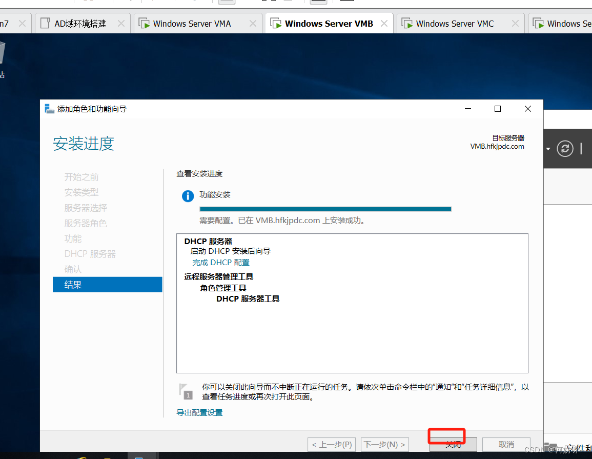 1、将VMB域控添加到现有域,输入域名hfkjpdc.com,并且输入现有权限添加域控的账户hfkjpdc\administrator密码。