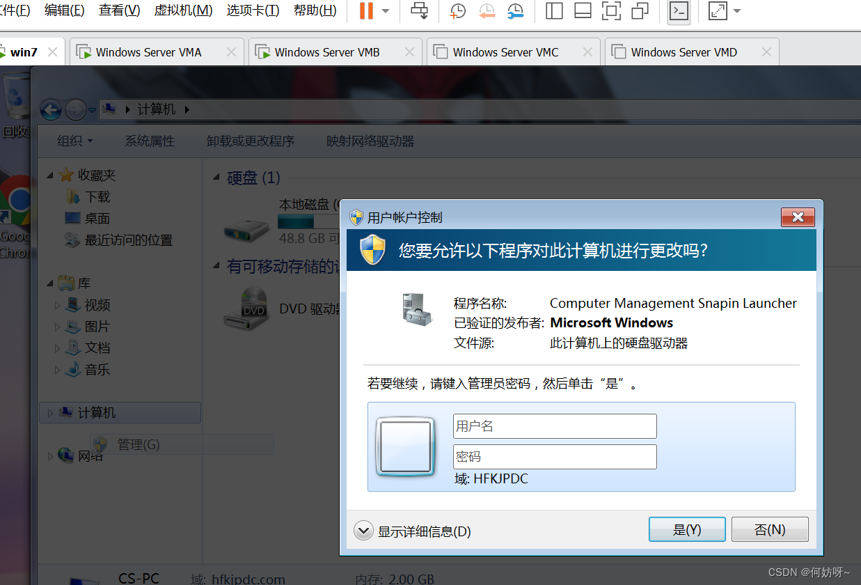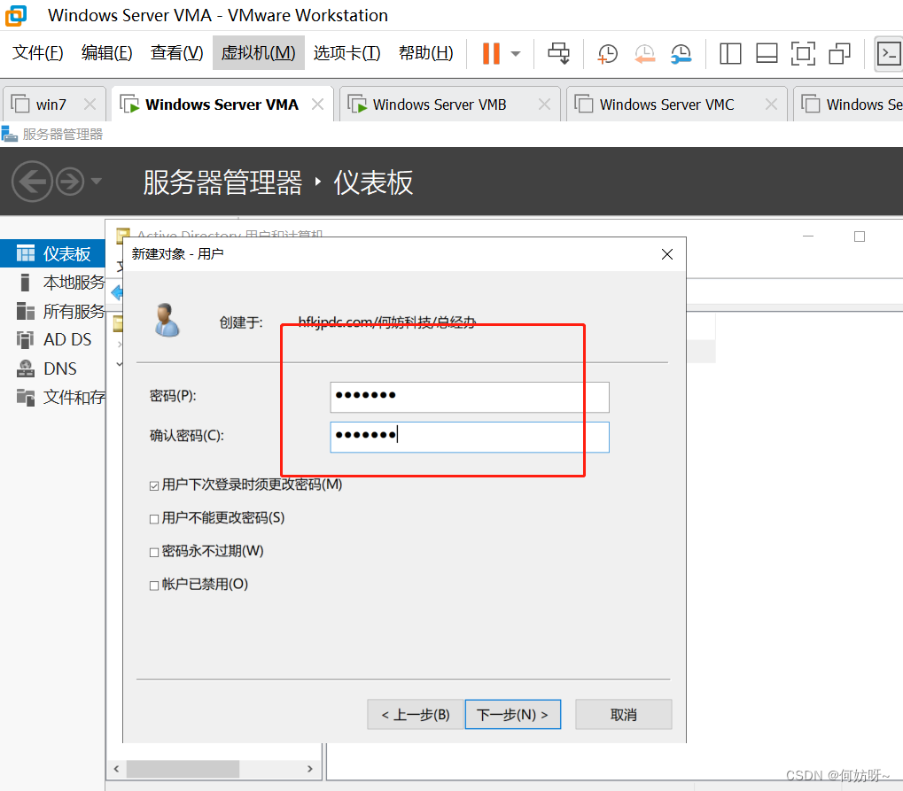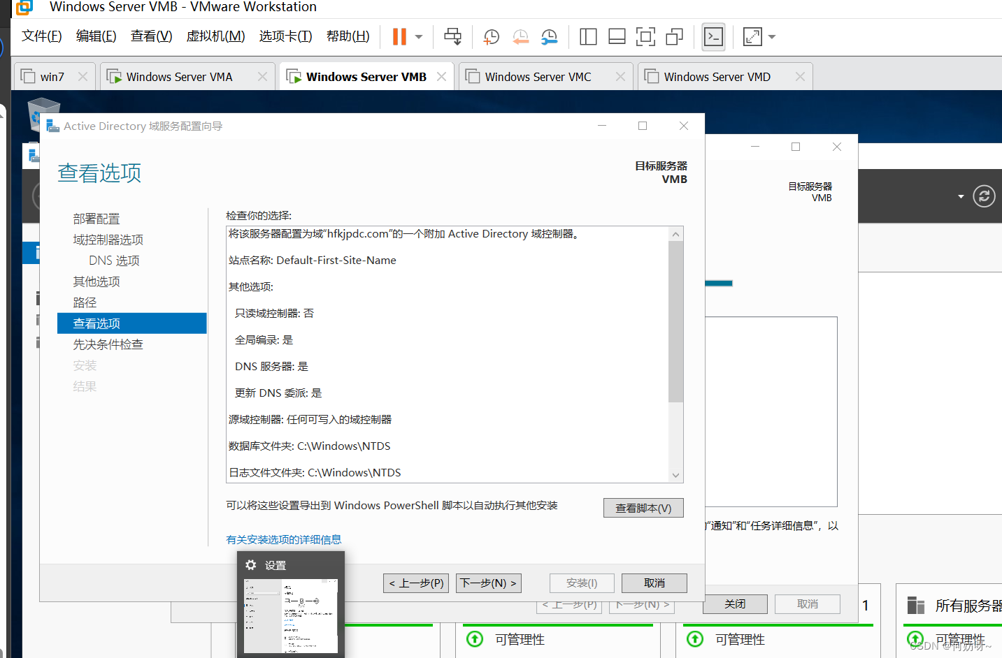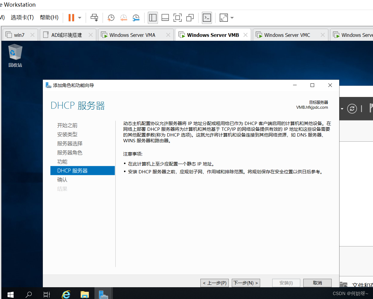 1、将VMB域控添加到现有域,输入域名hfkjpdc.com,并且输入现有权限添加域控的账户hfkjpdc\administrator密码。