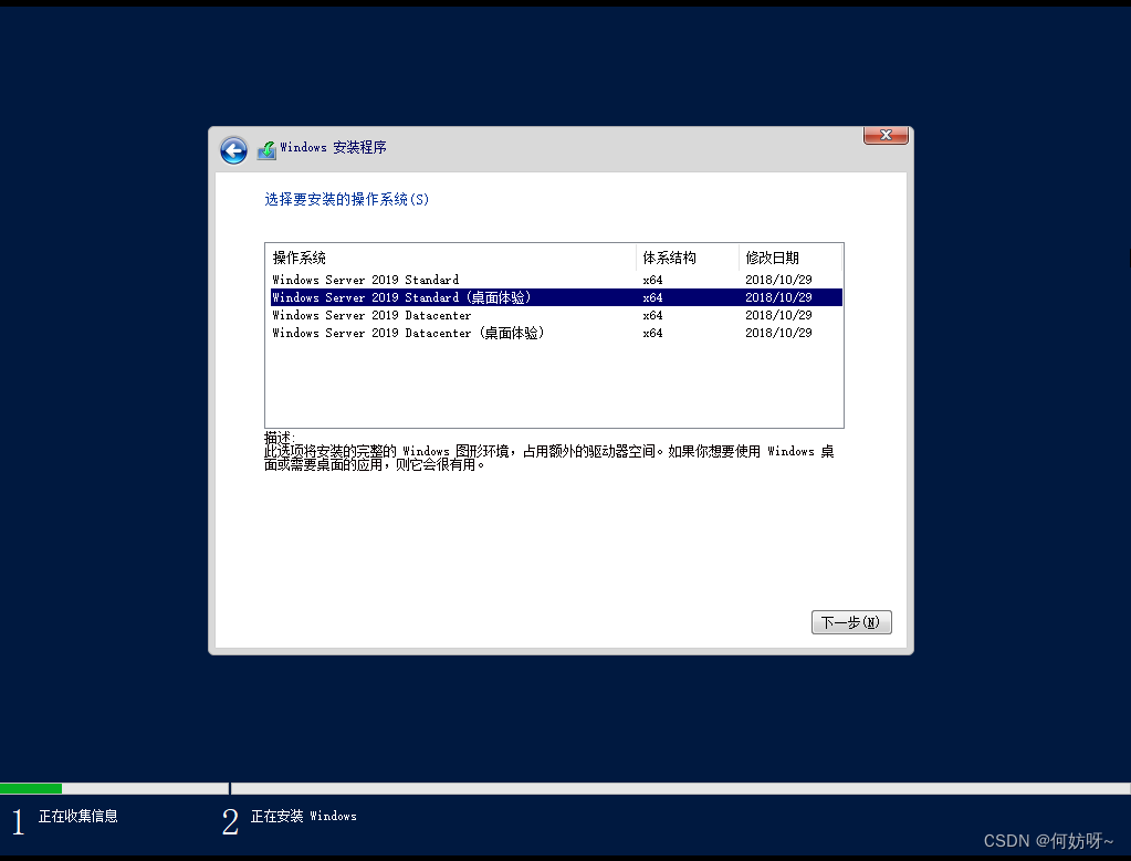 3、选择“Windows Server 2019 Standard(桌面体验)”