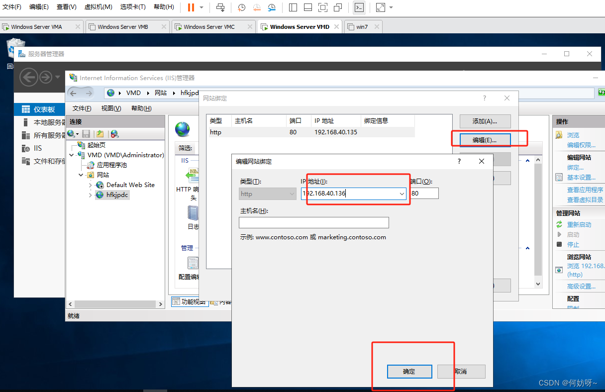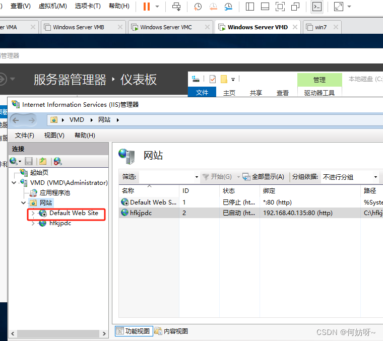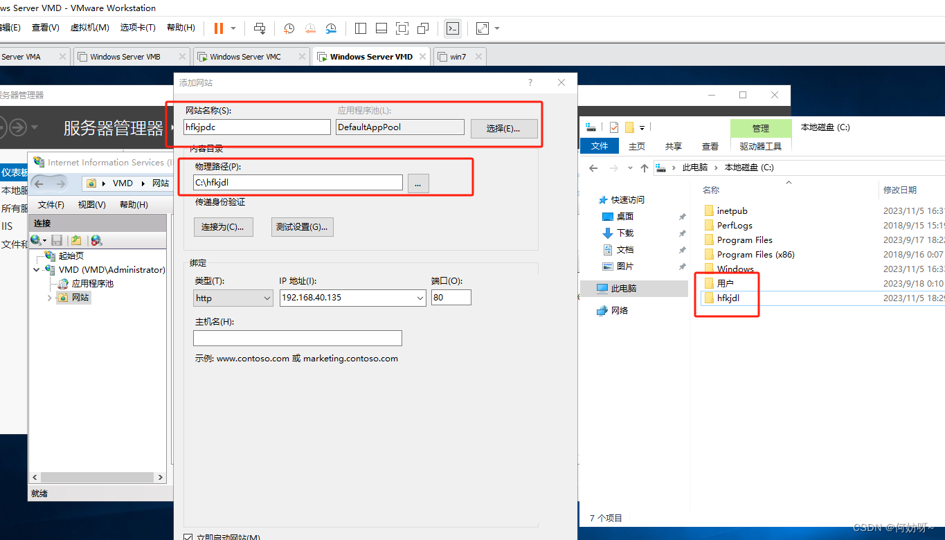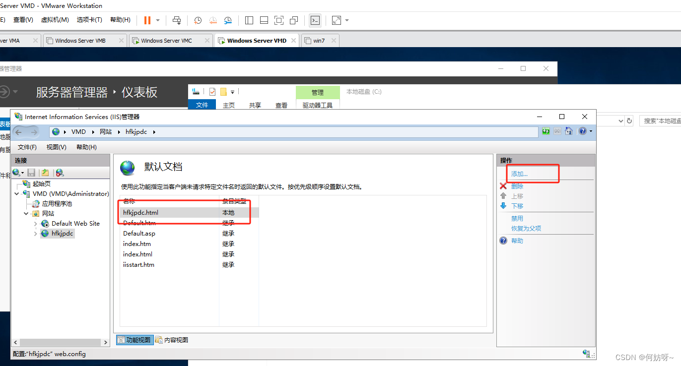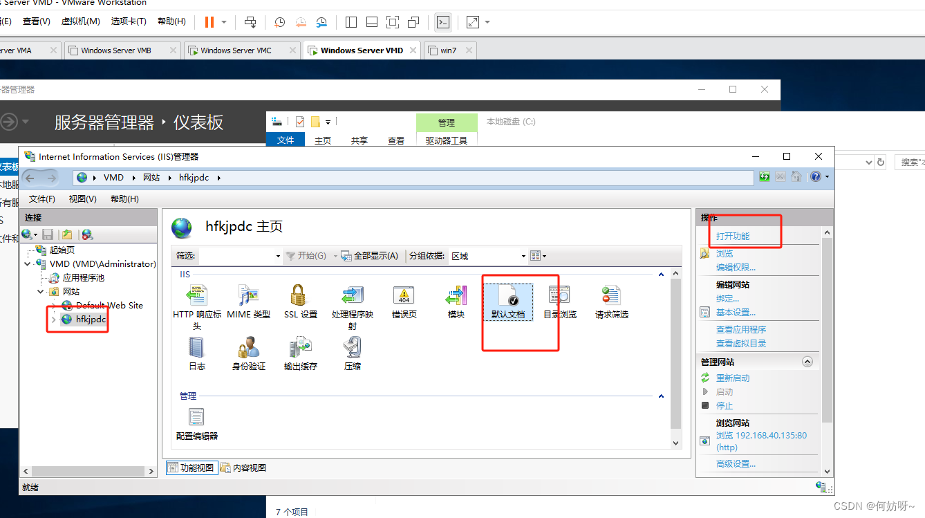 在VMC、VMD上安装配置WEB服务;