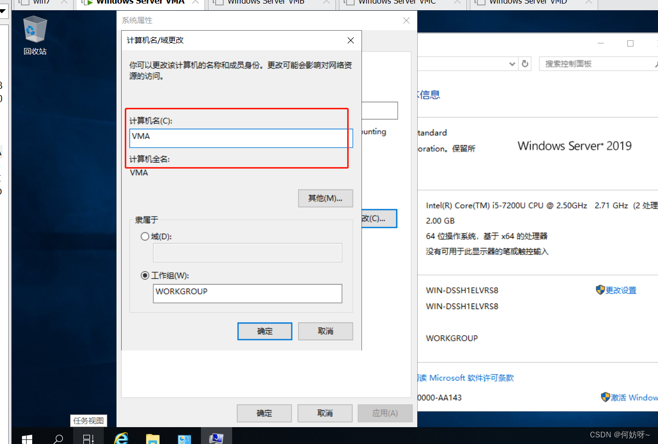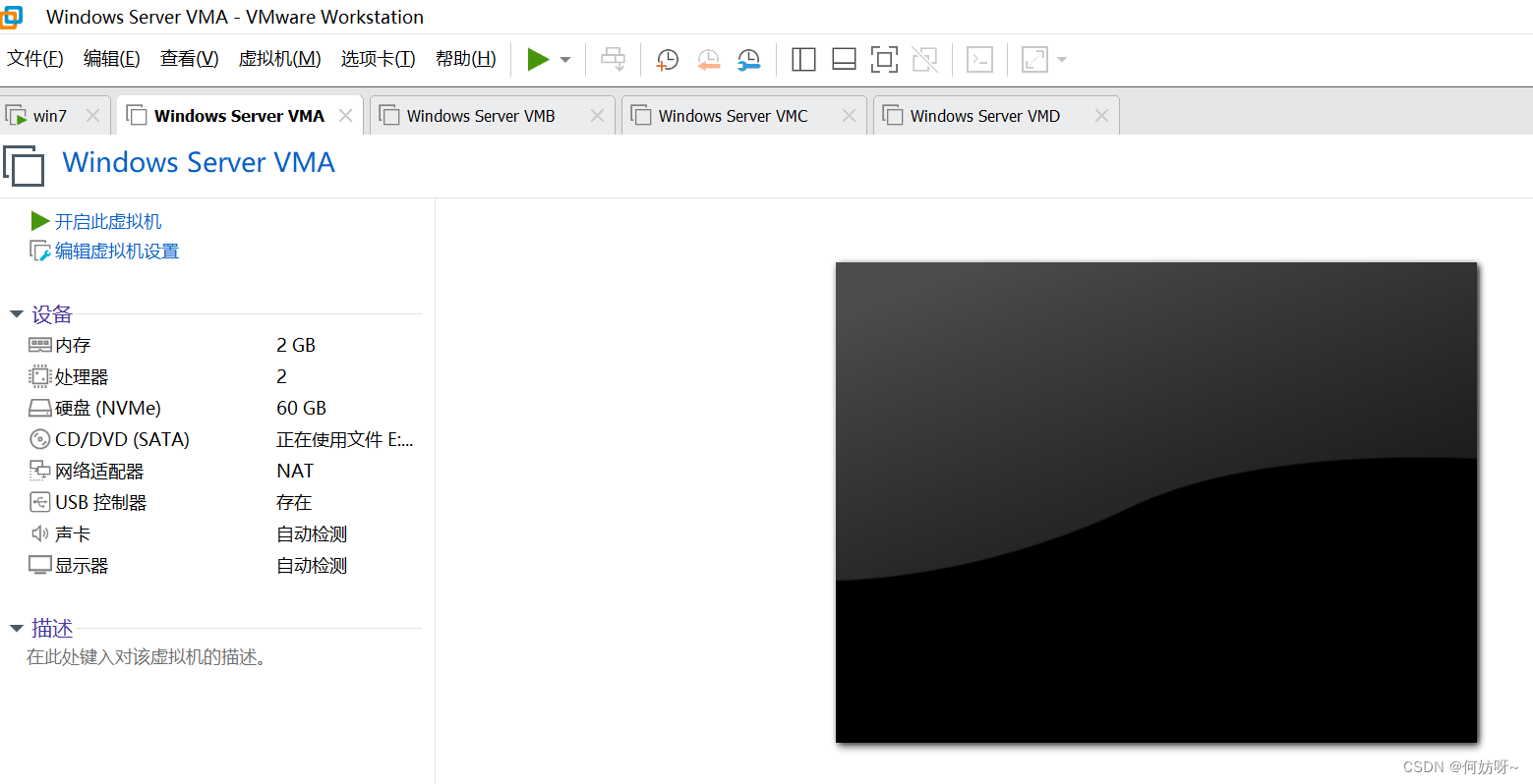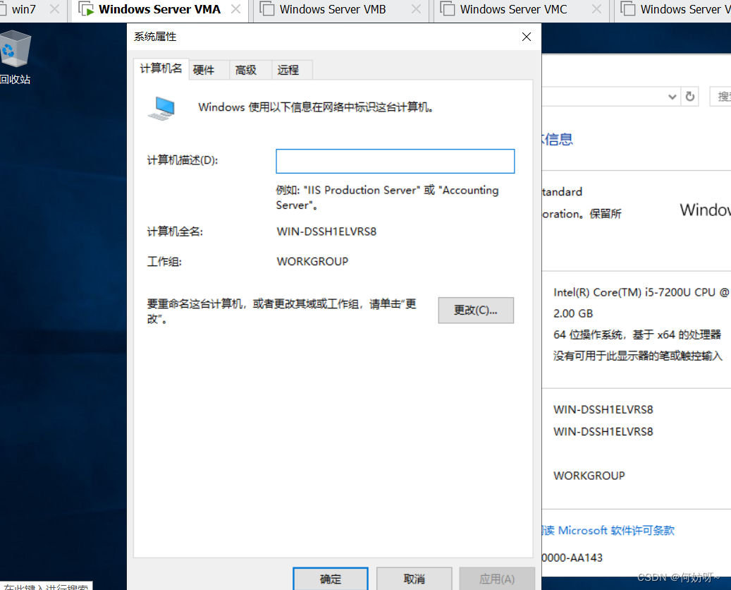 3、根据需求,这里配置成VMA,其他主机配置成VMB、VMC、VMD、cs