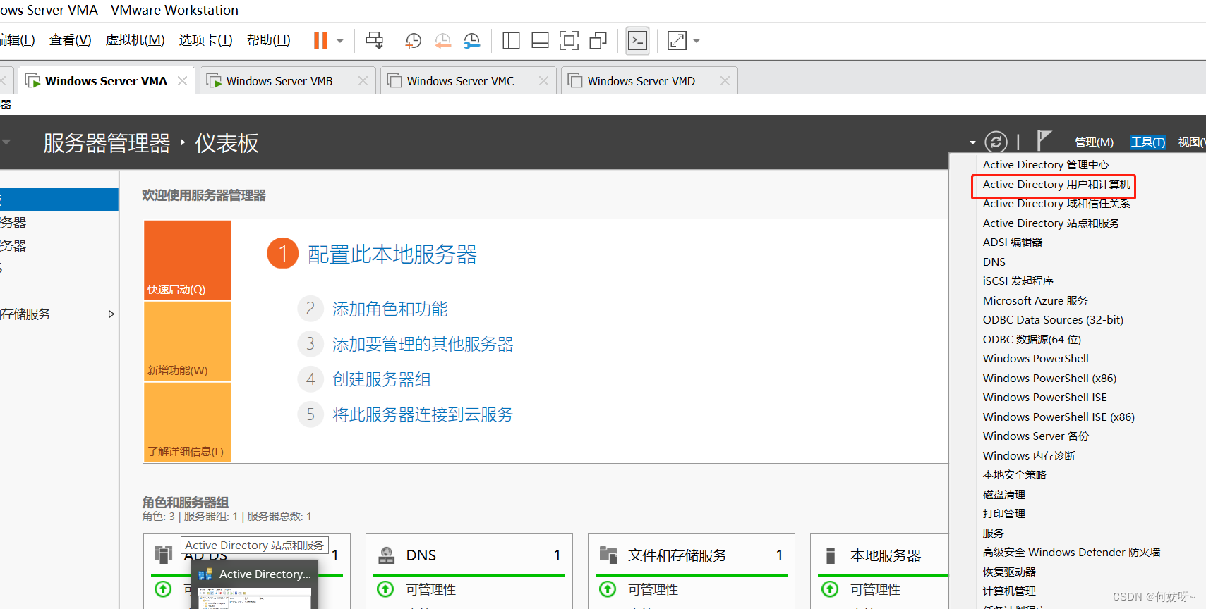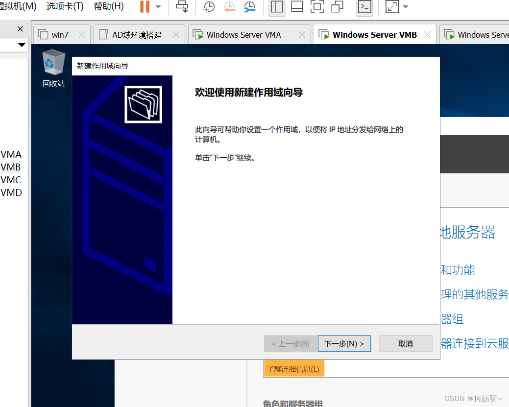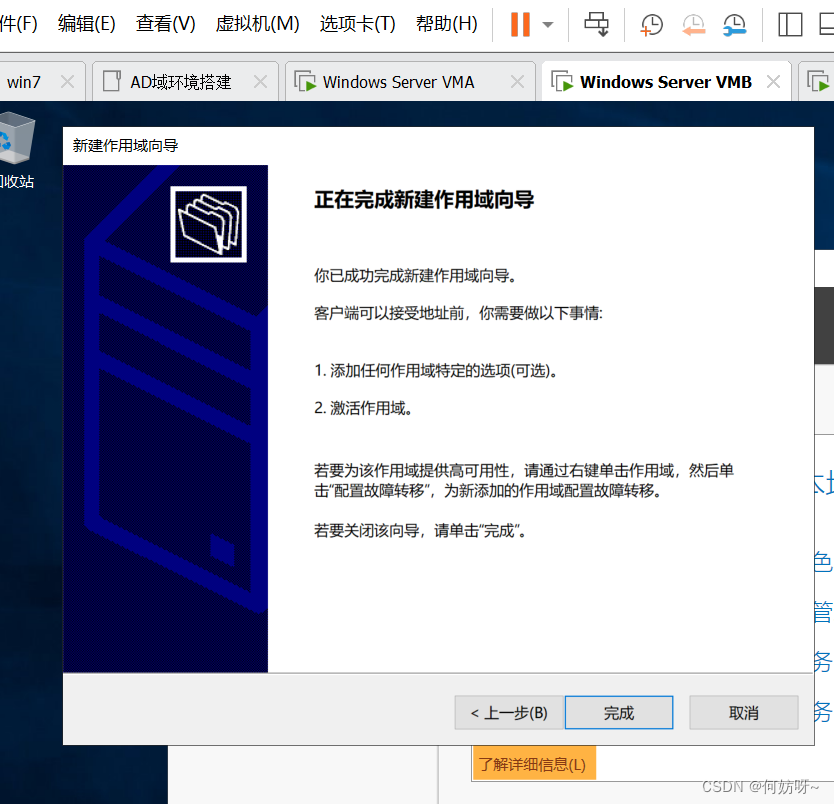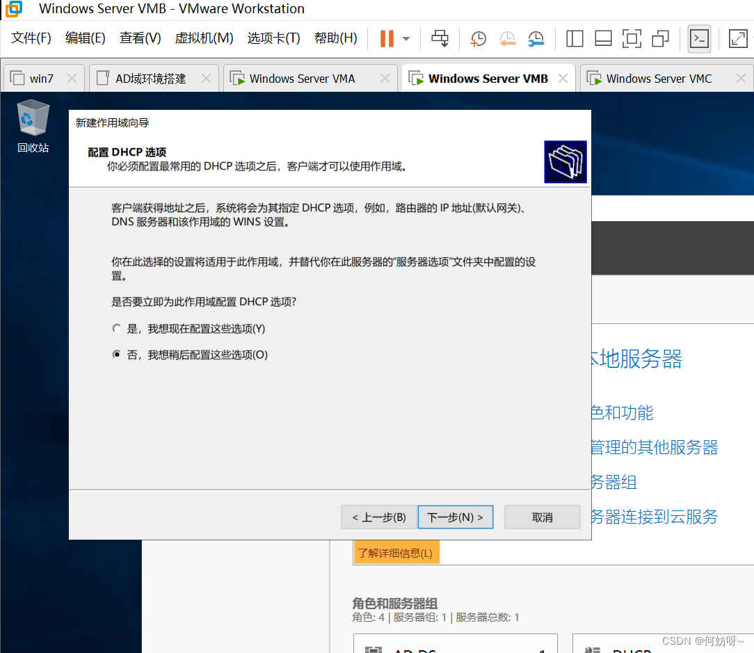 VMA做为GC、Schema Master、Domain Naming Master,VMB做为PDC、RID、Infrastructure Master;