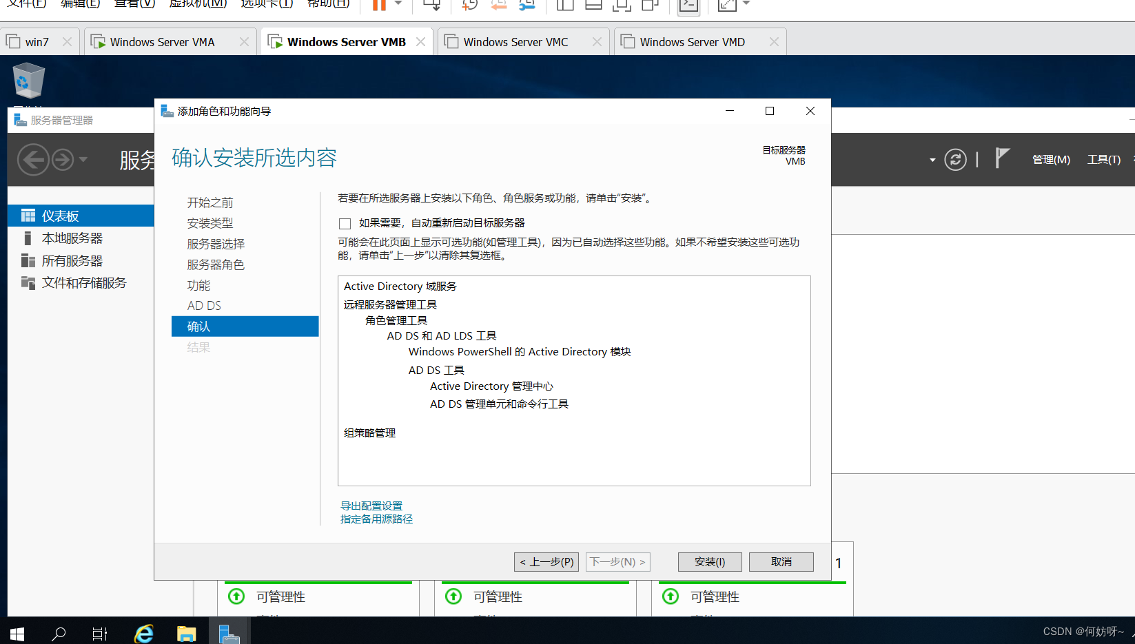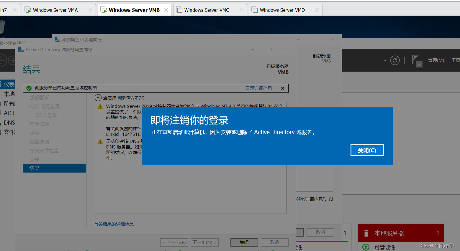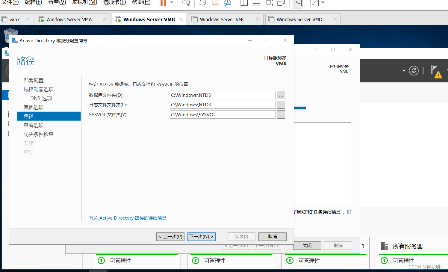 VMA做为GC、Schema Master、Domain Naming Master,VMB做为PDC、RID、Infrastructure Master;