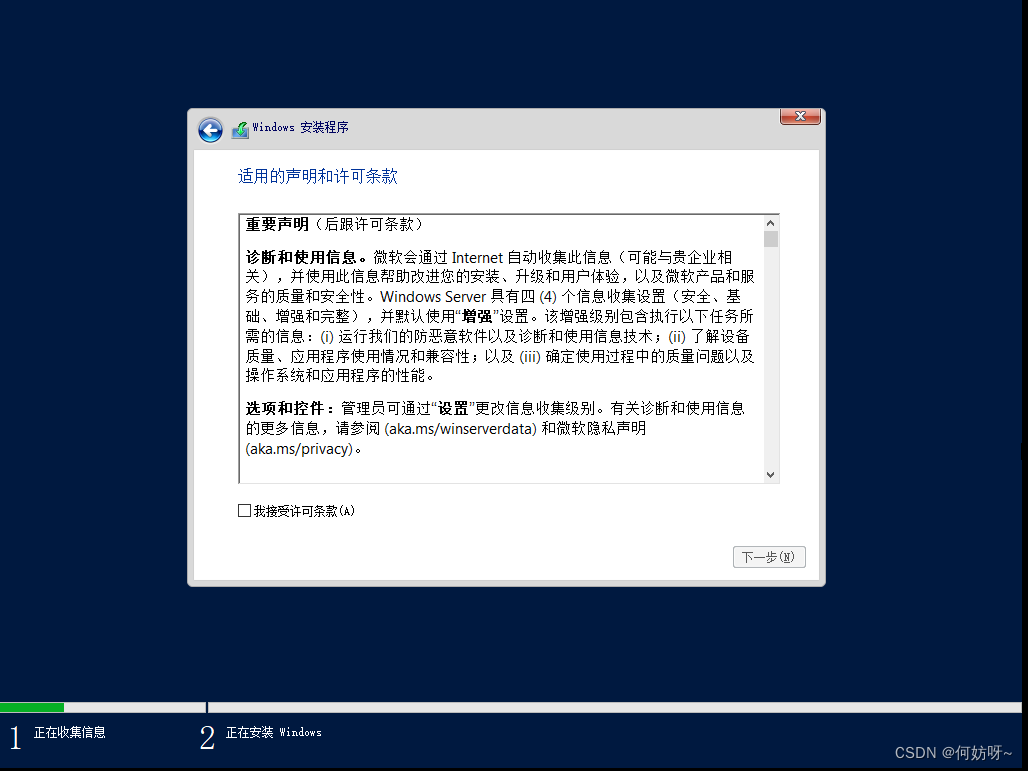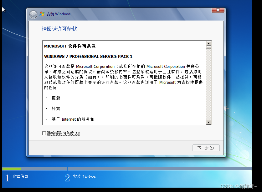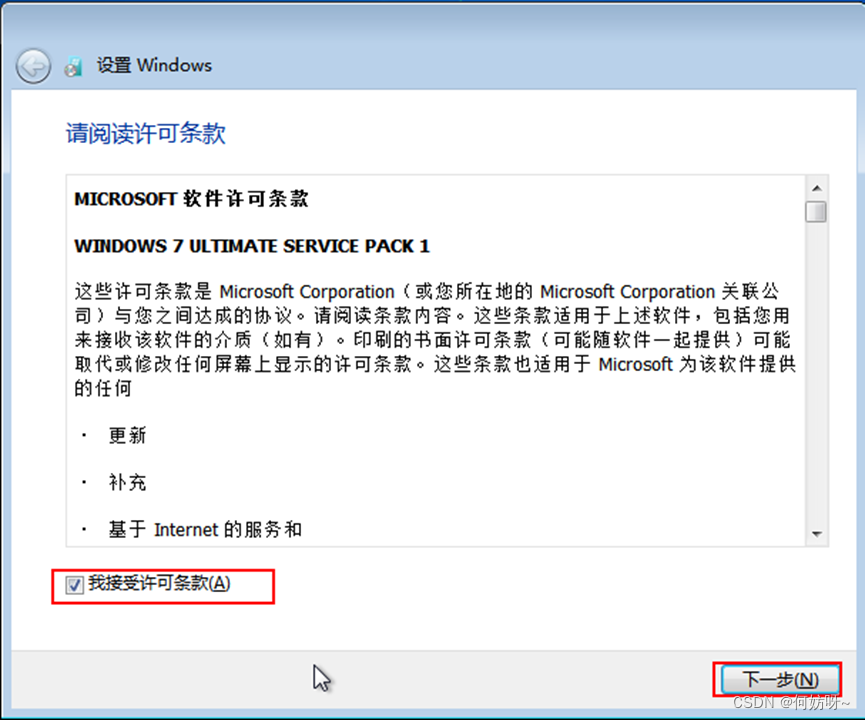 4、勾选”我接受许可条款“,下一步