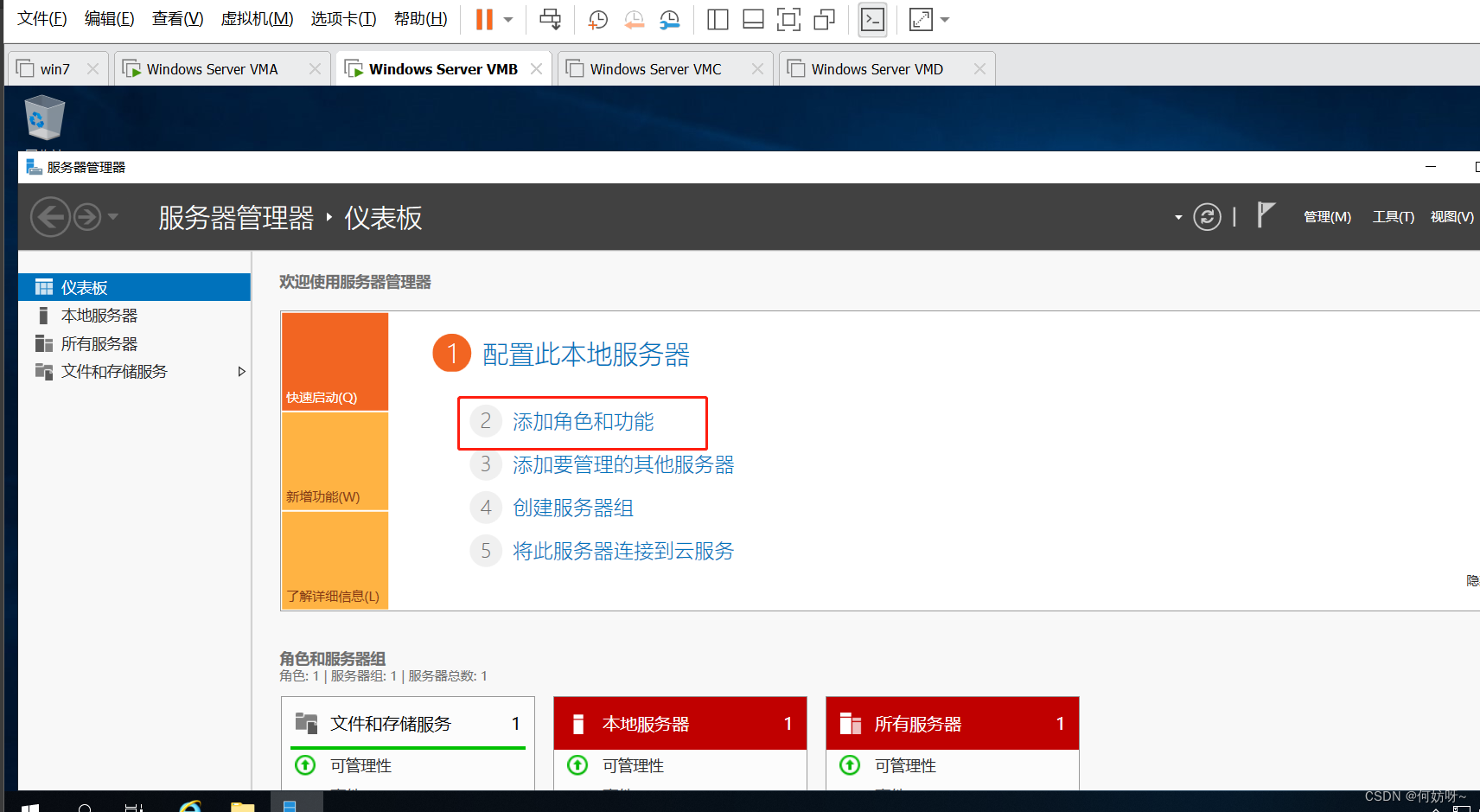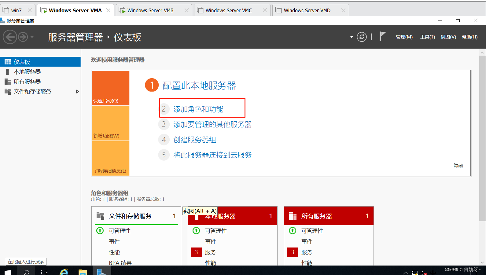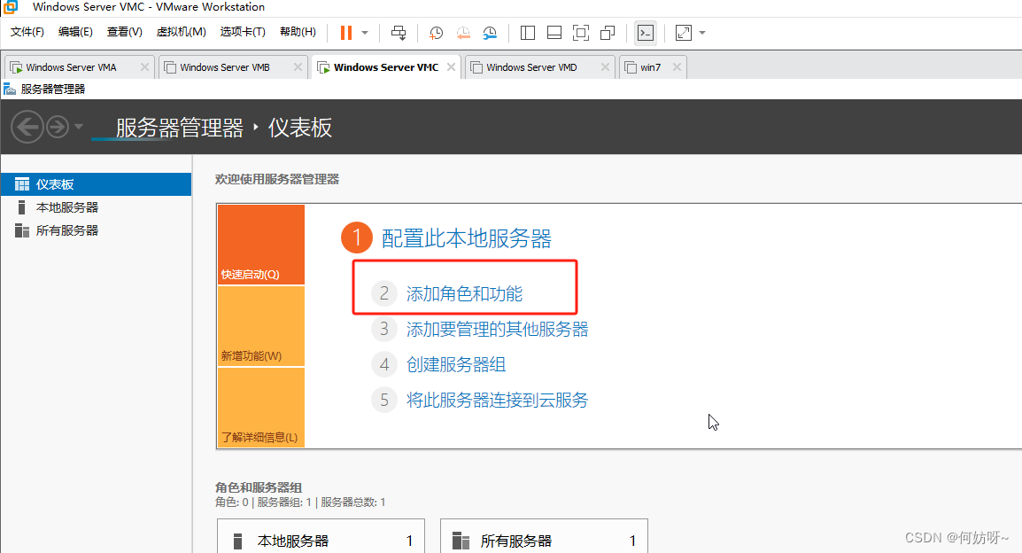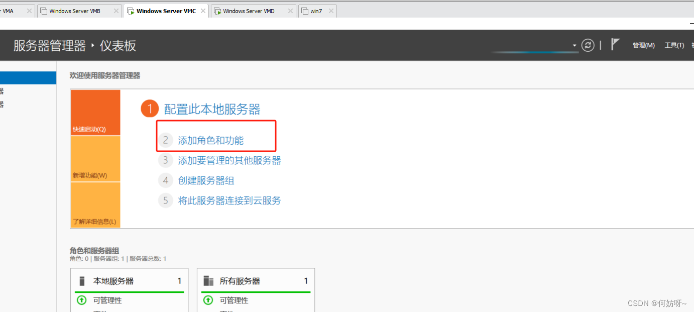 1、在服务器管理器选择“添加角色和功能”