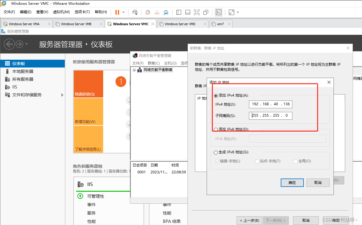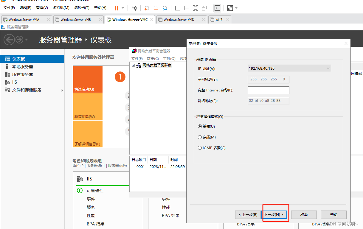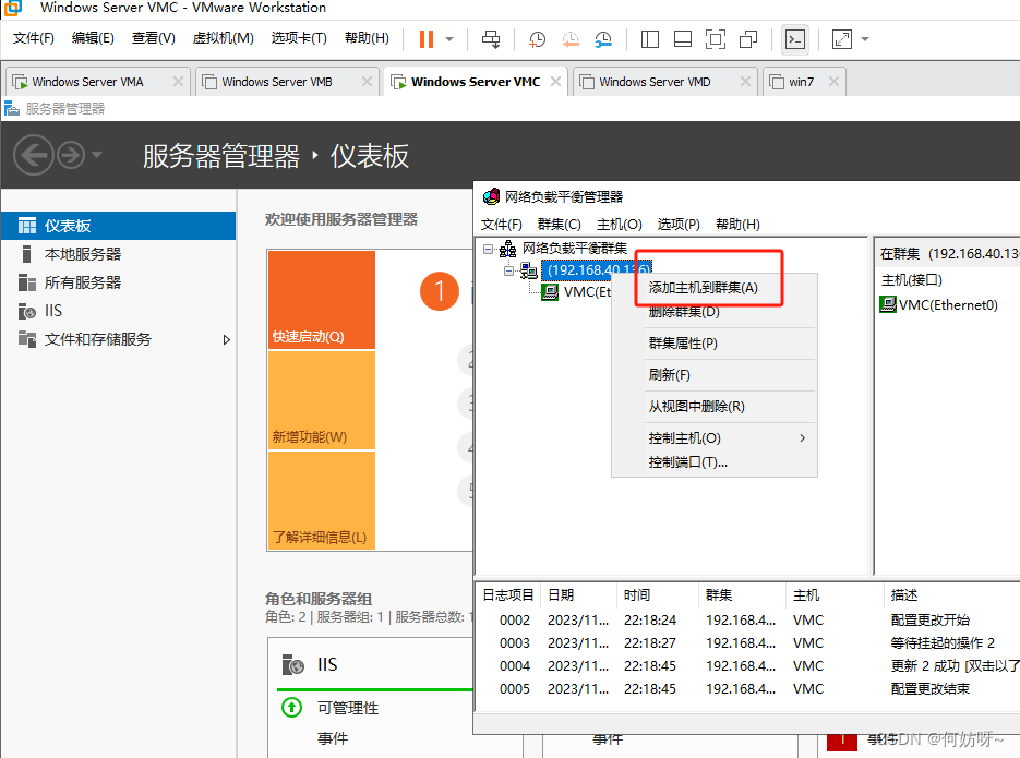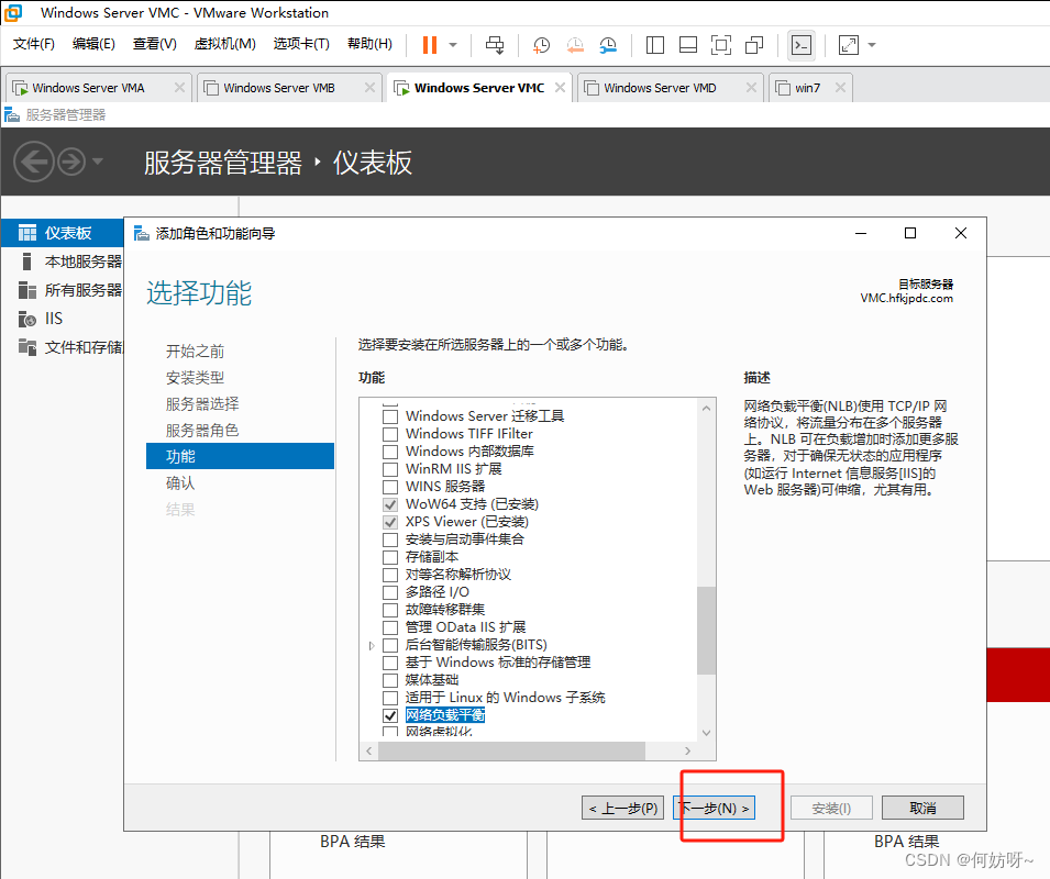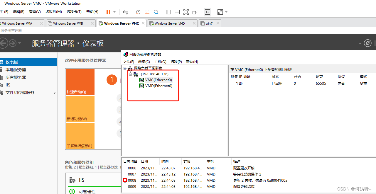 在VMC、VMD上配置负载均衡;