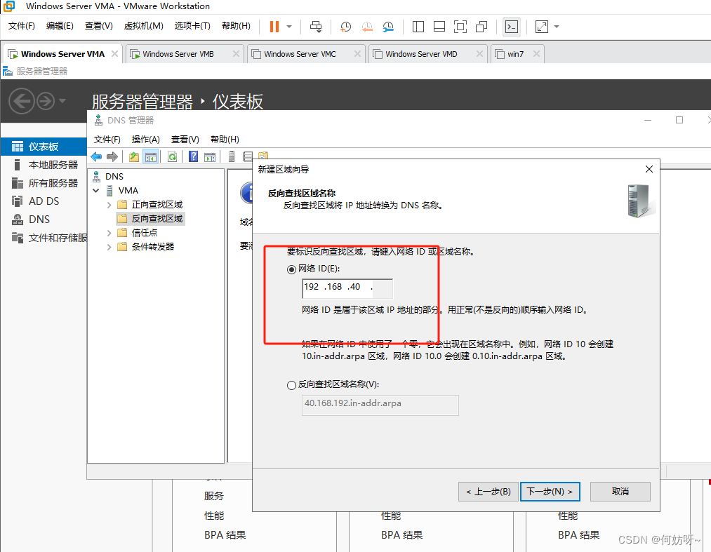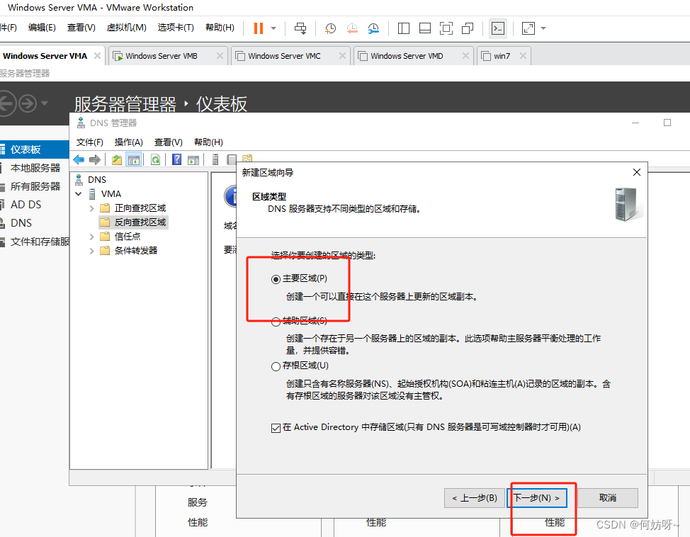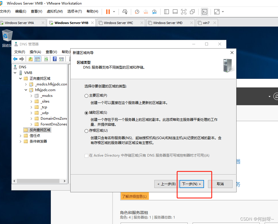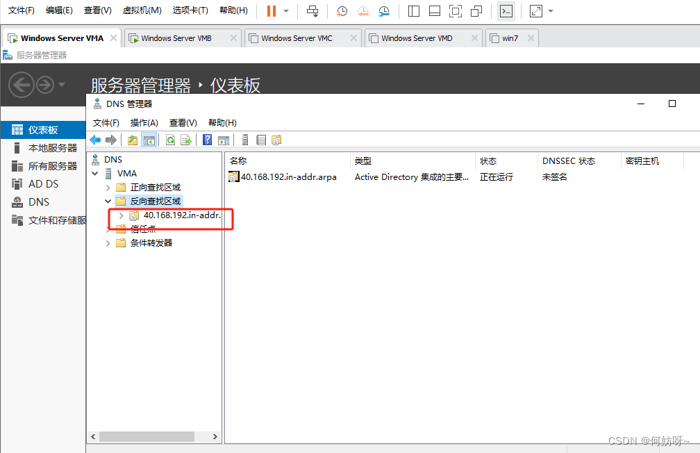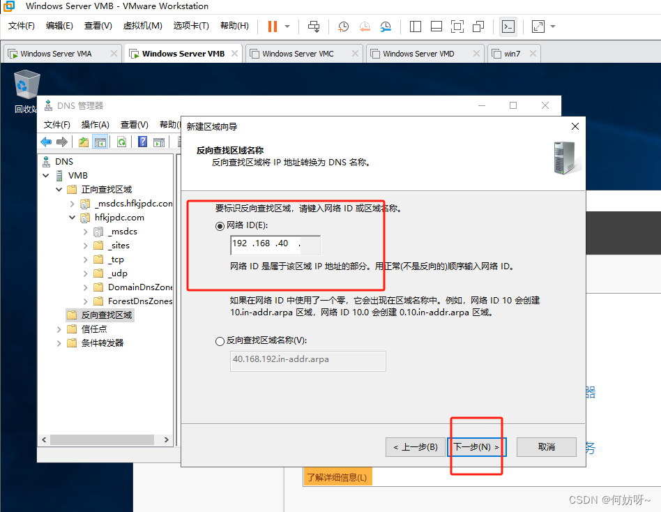 注意:因为2阶段AD域搭建已完成正向查找区域创建,现增加反向查找区域