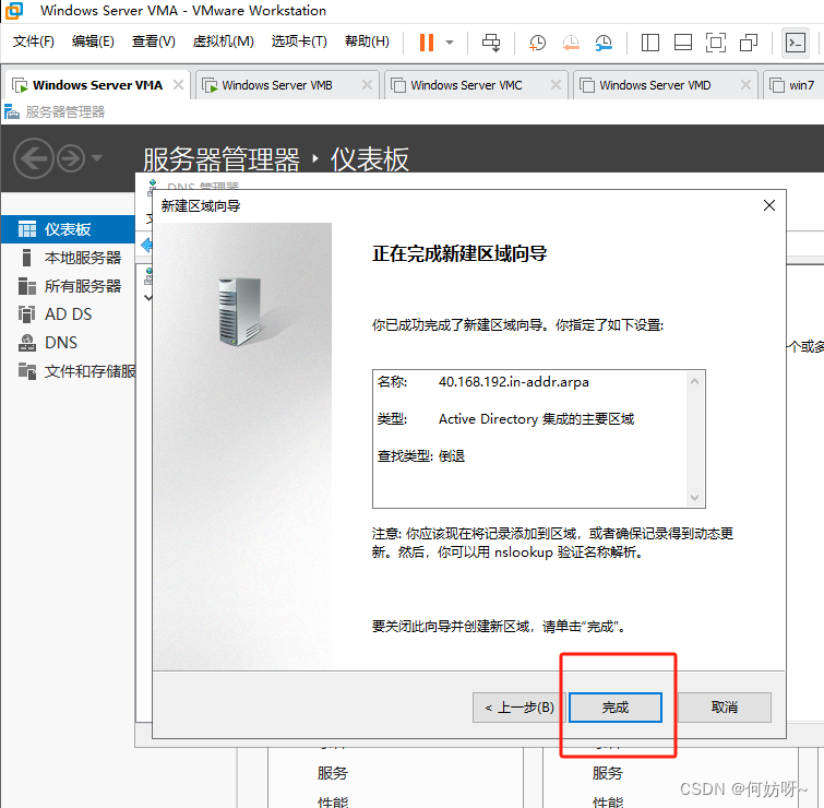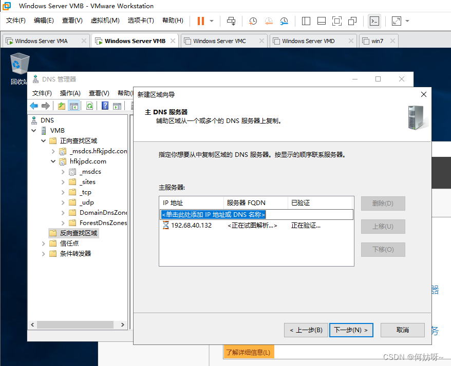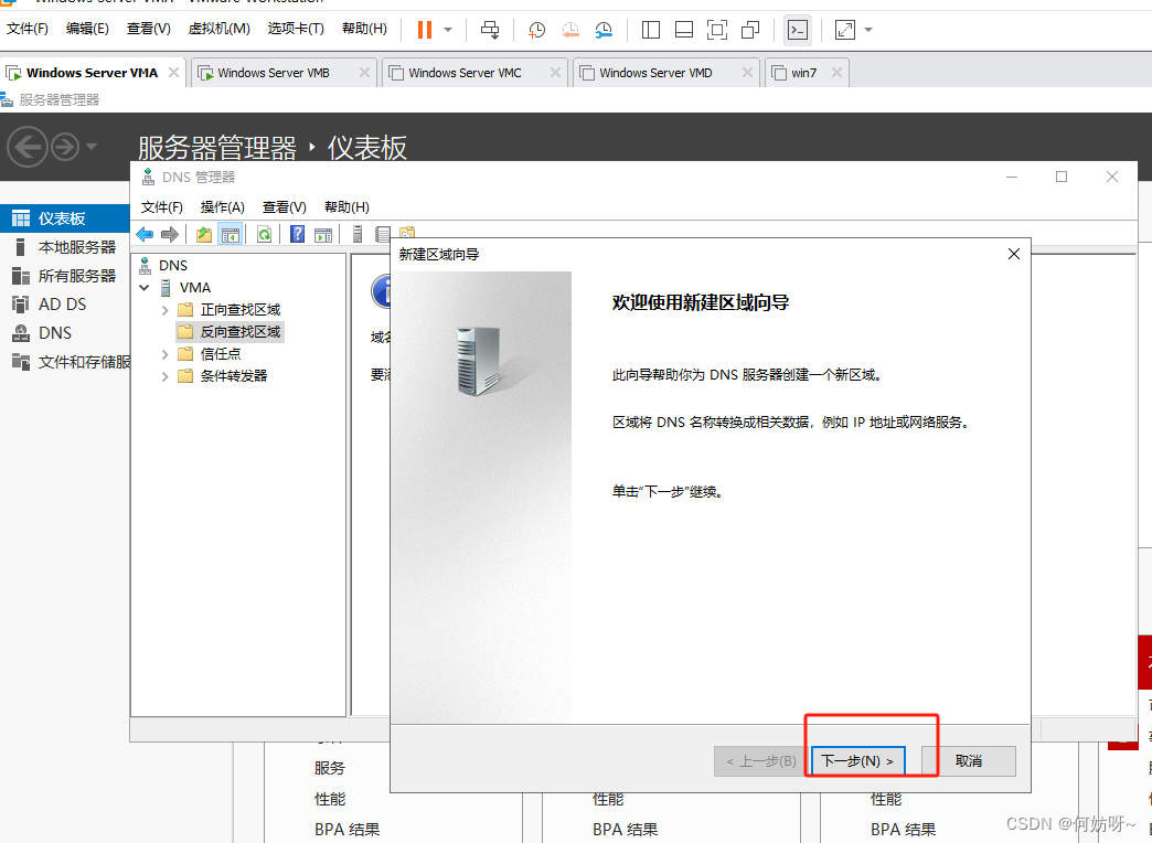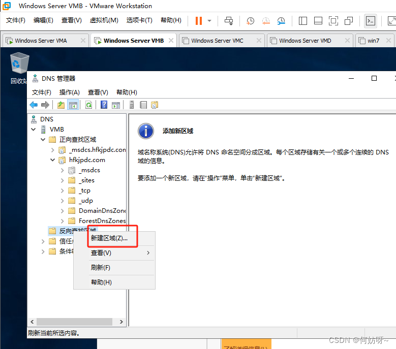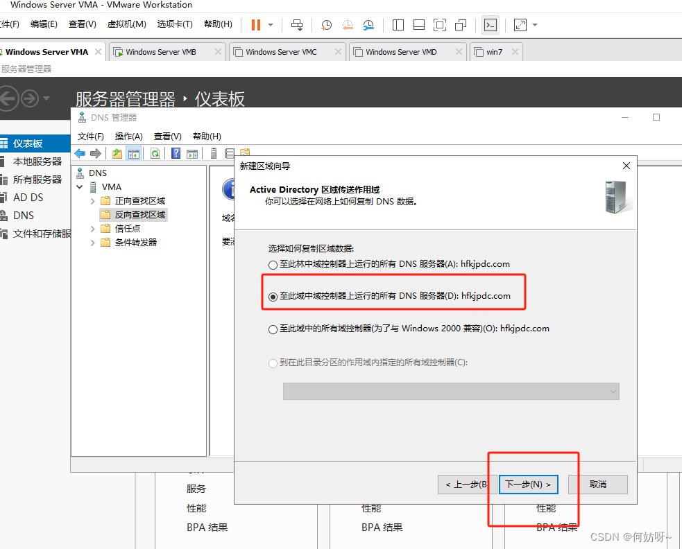 注意:因为2阶段AD域搭建已完成正向查找区域创建,现增加反向查找区域