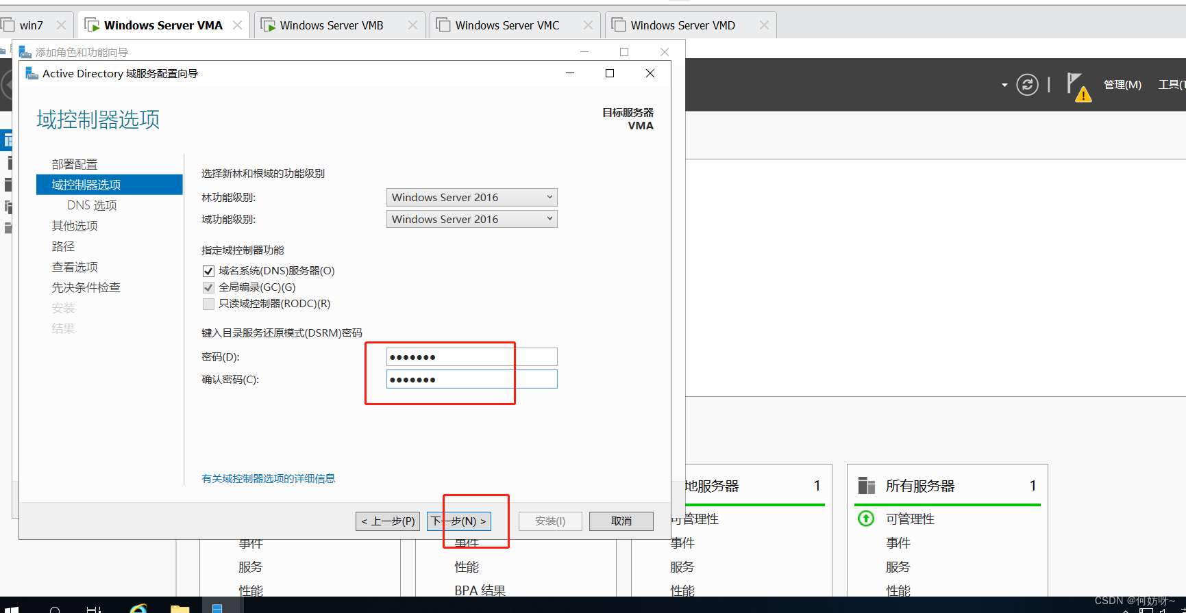 目录还原模式是一个安全模式,可以开机进入安全模式时修复AD数据库,但是必须使用此密码,进行下一步