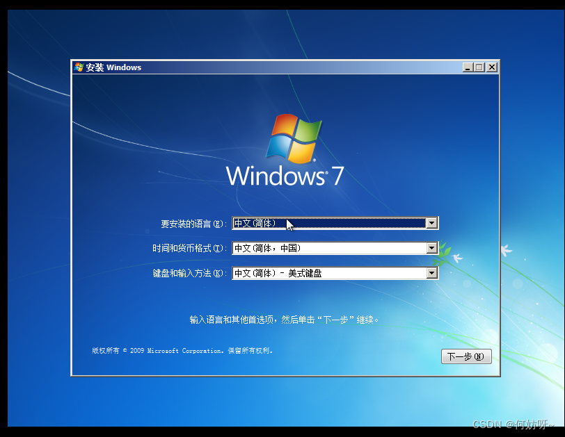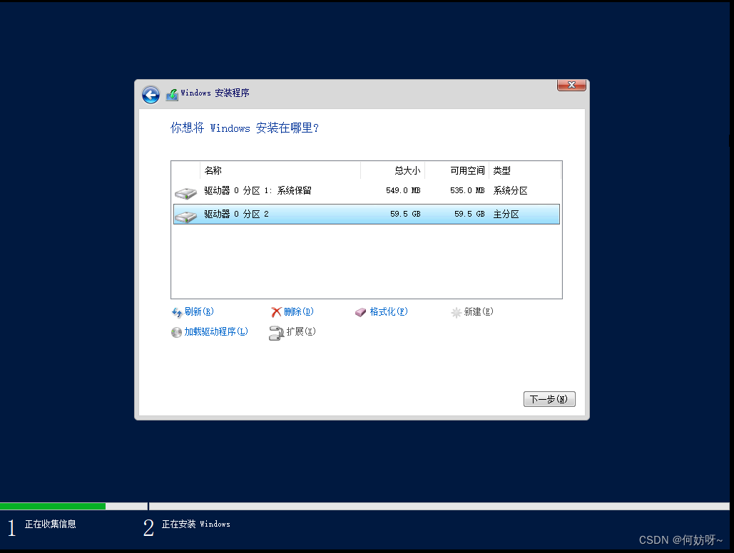 1、测试主机进行系统安装,这里选择“下一步”
