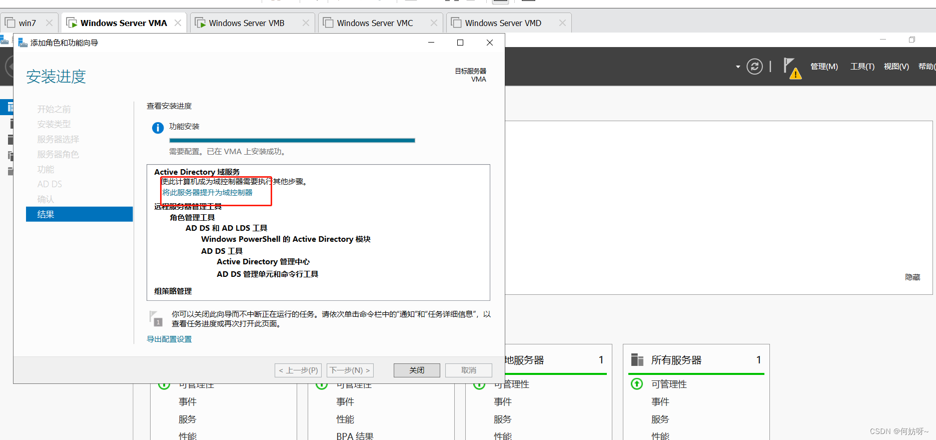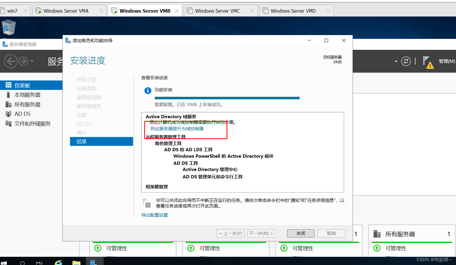 10、安装完之后进行下一阶段的操作,点击“将此服务器提升为域服务器”