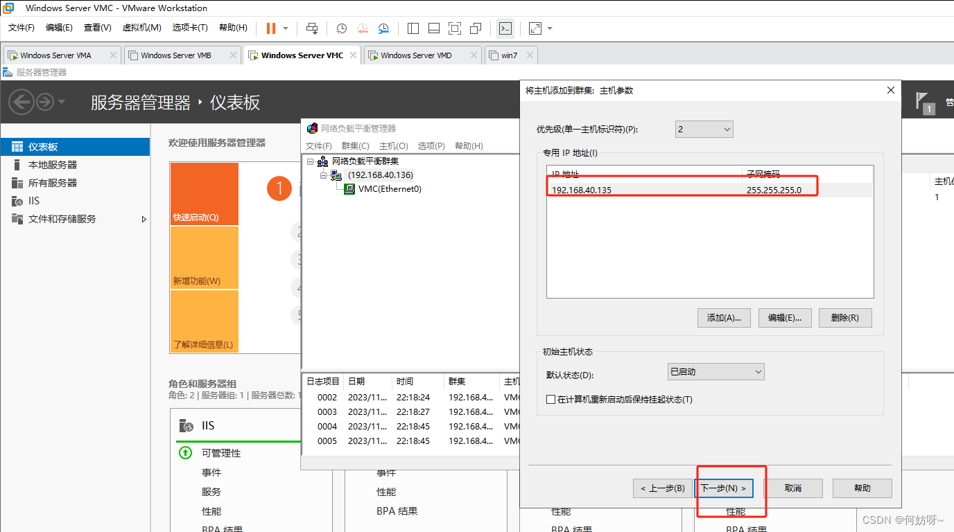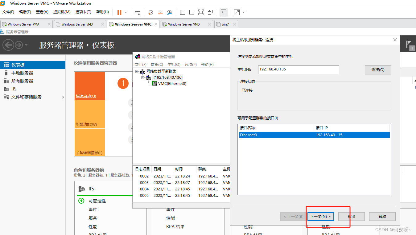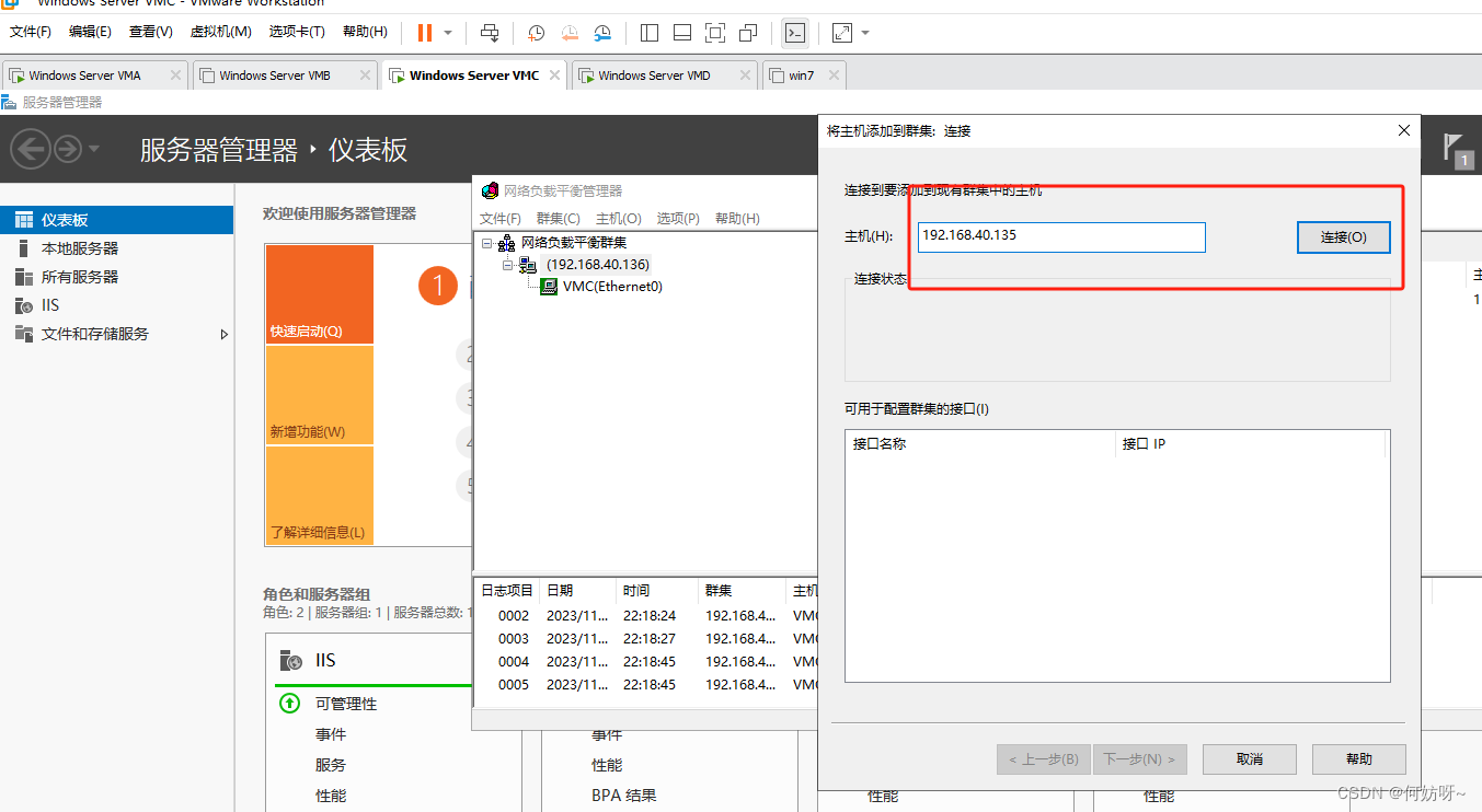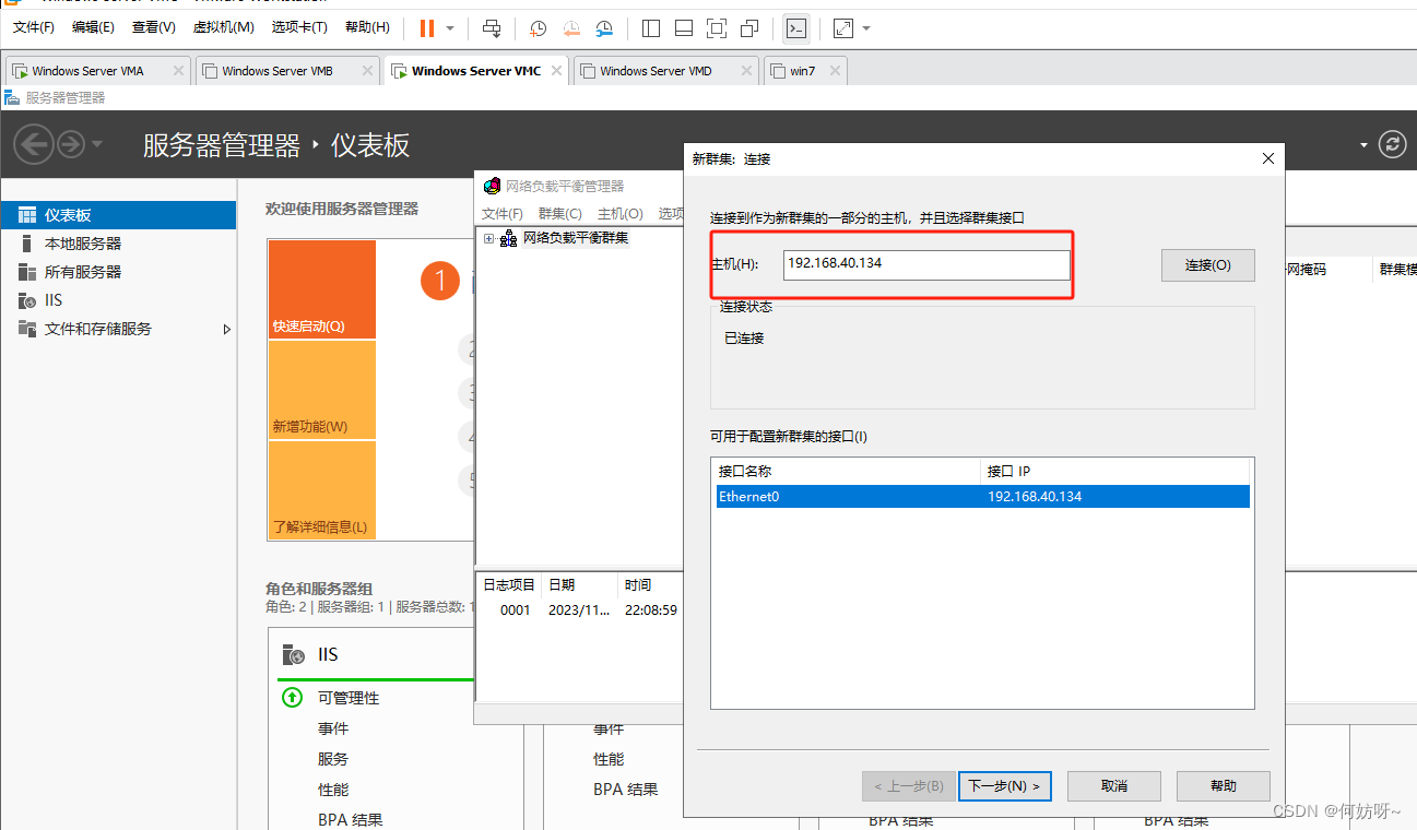 10、VMC与VMD都需要安装负载均衡服务;输入要添加的主机ip,然后进行连接
