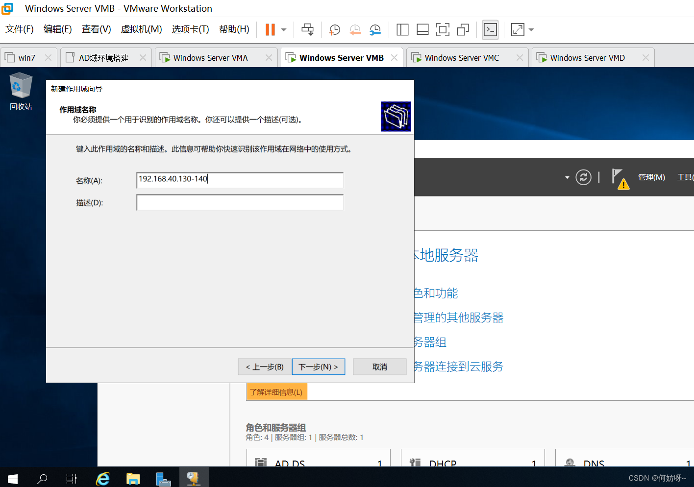 4、设置作用域名称,这里我们设置为网段的信息