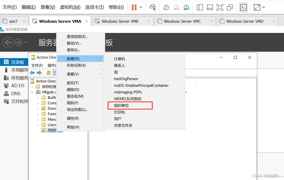 4、右键何妨科技新建组织单位