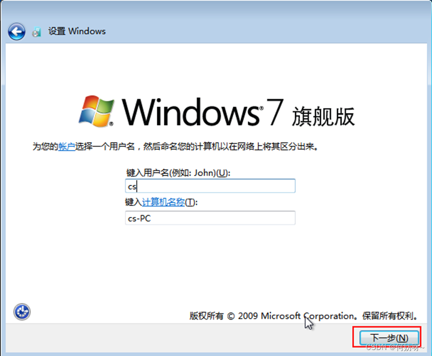 2、输入用户名“cs”,进行下一步
