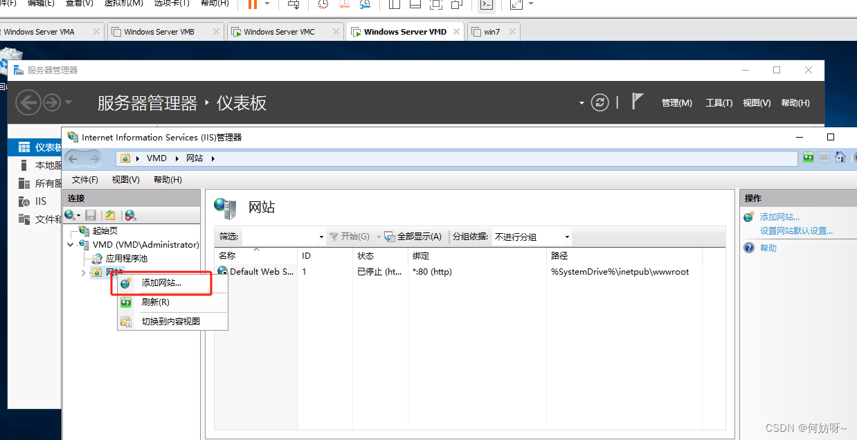 2、在网站右键“添加网站”