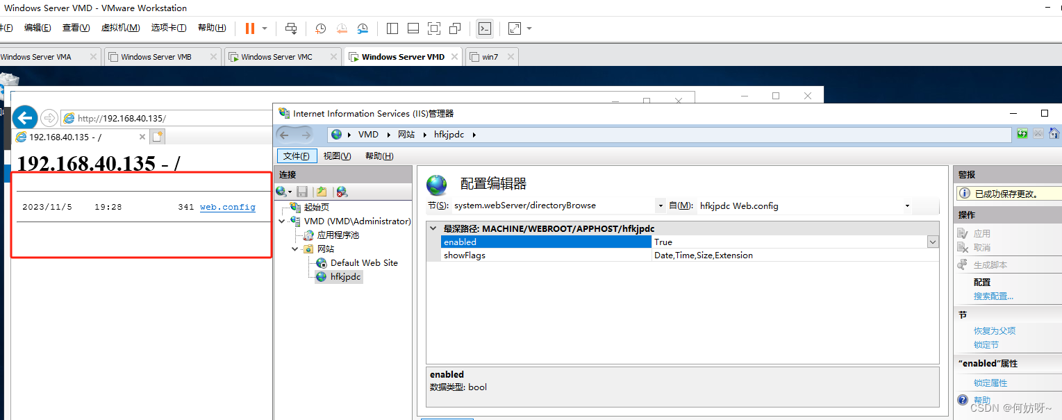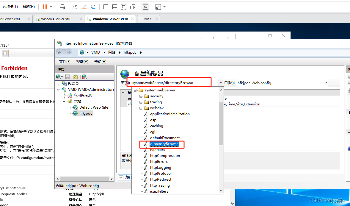 8、设置configuration/system.webServer/directoryBrowse/enabled,
