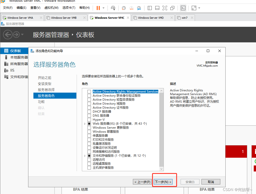 4、这里看到VMA服务器,下一步