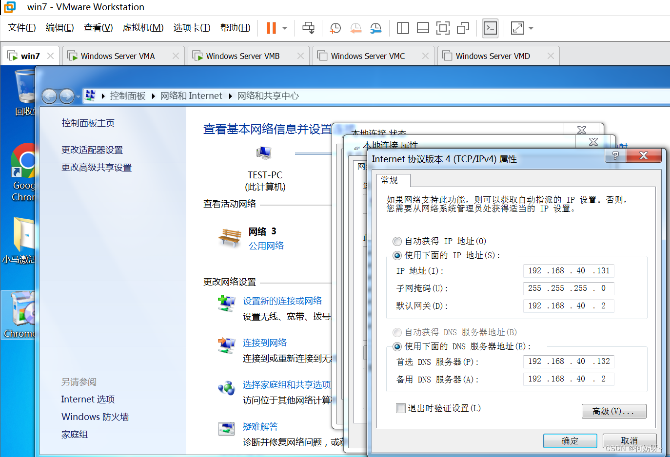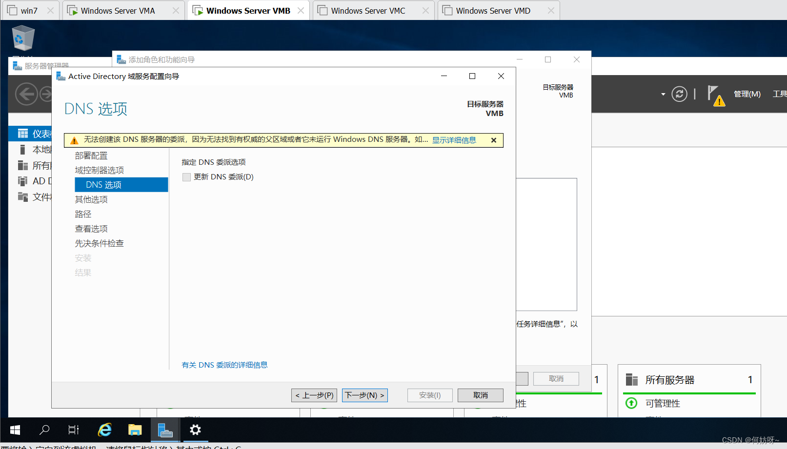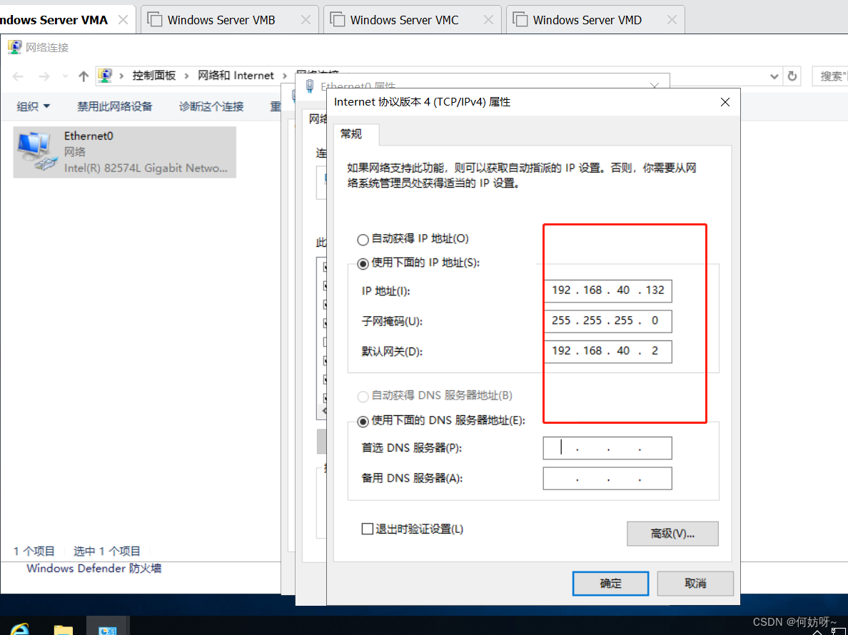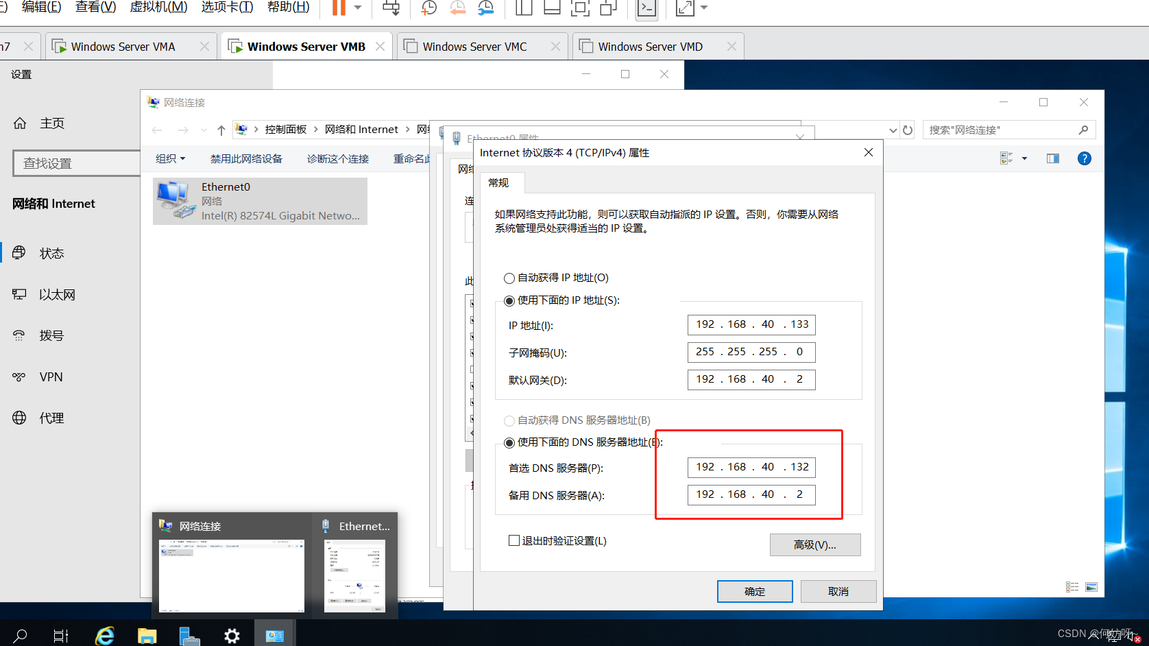 1、对VMB的DNS设置为主机VMA的ip地址