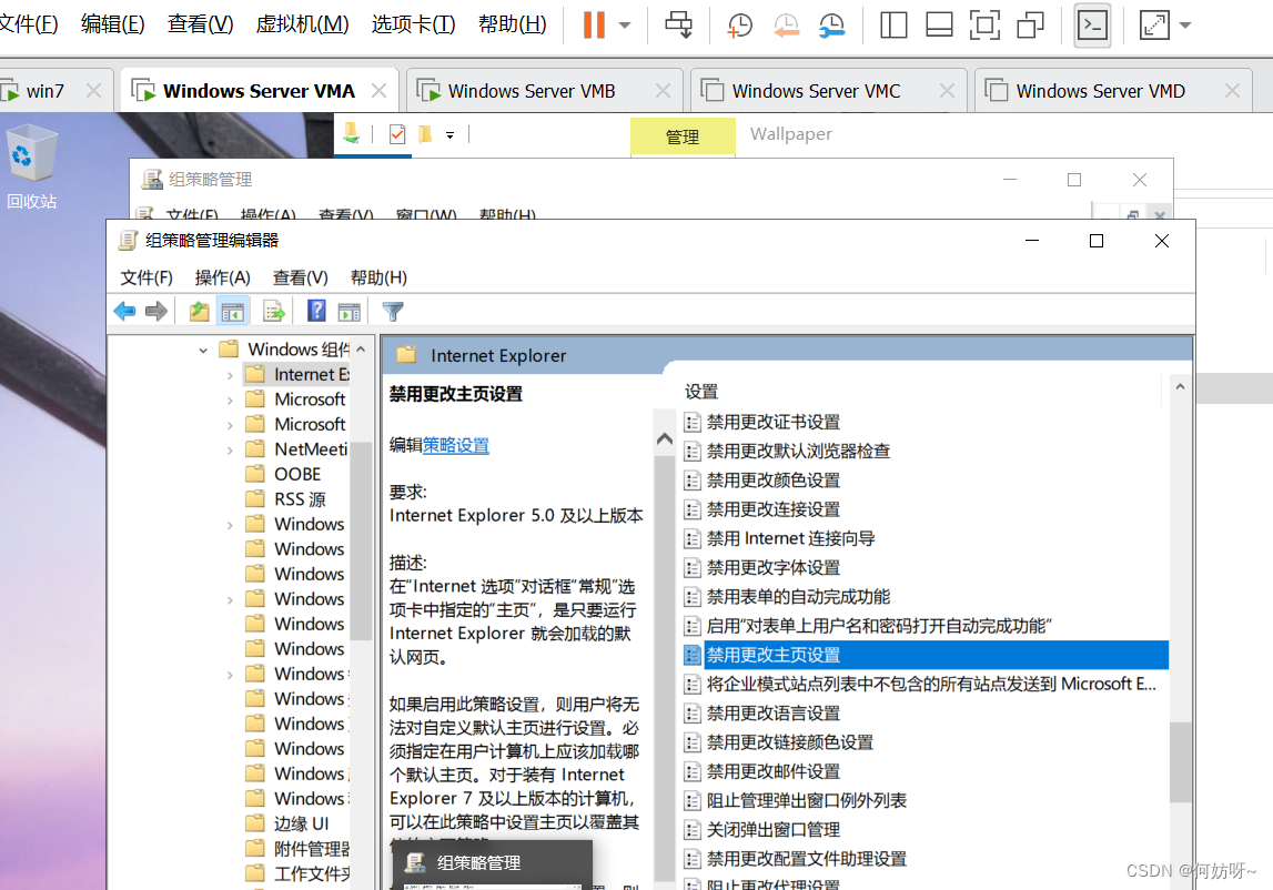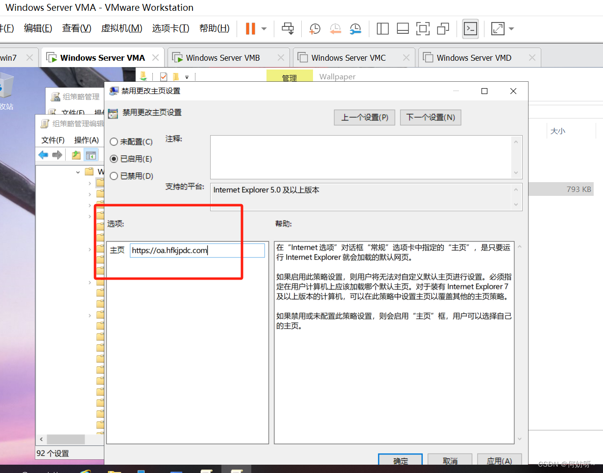 组策略管理(gpmc.msc)→依次展开SZPDC.COM→编辑神州动力GPO→依次展开[用户_策略_管理模板_Windows 组件_Internet Explorer]→启用禁用更改主页设置,主页设为http://oa.szpdc.com;