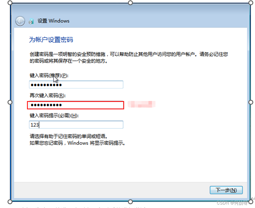 3、设置还原密码,进行下一步